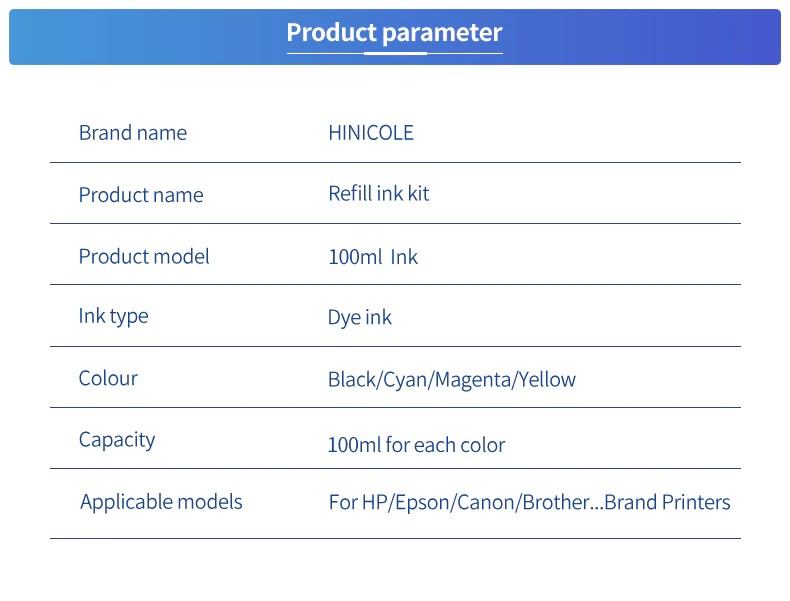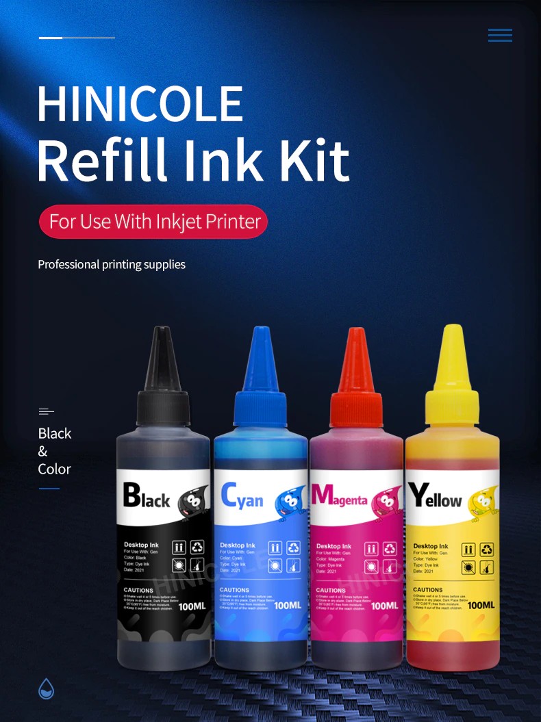 HINICOLE 100ml Universal Refill Ink kit for Epson for Canon for HP for Brother Inkjet Printer CISS Cartridge Printer Ink