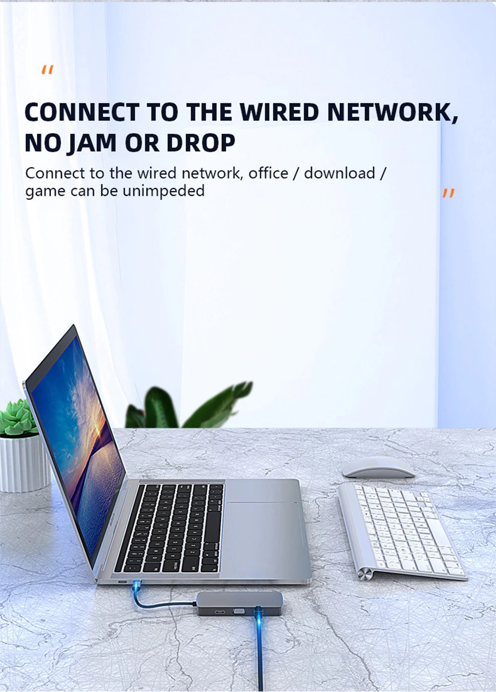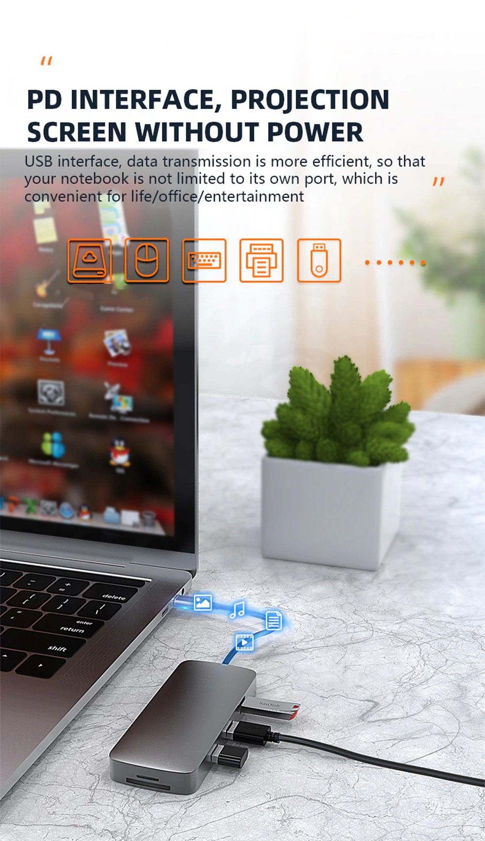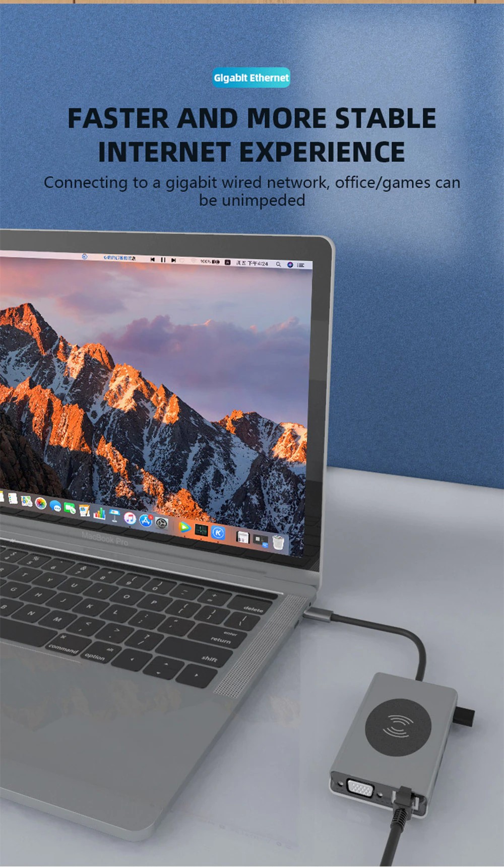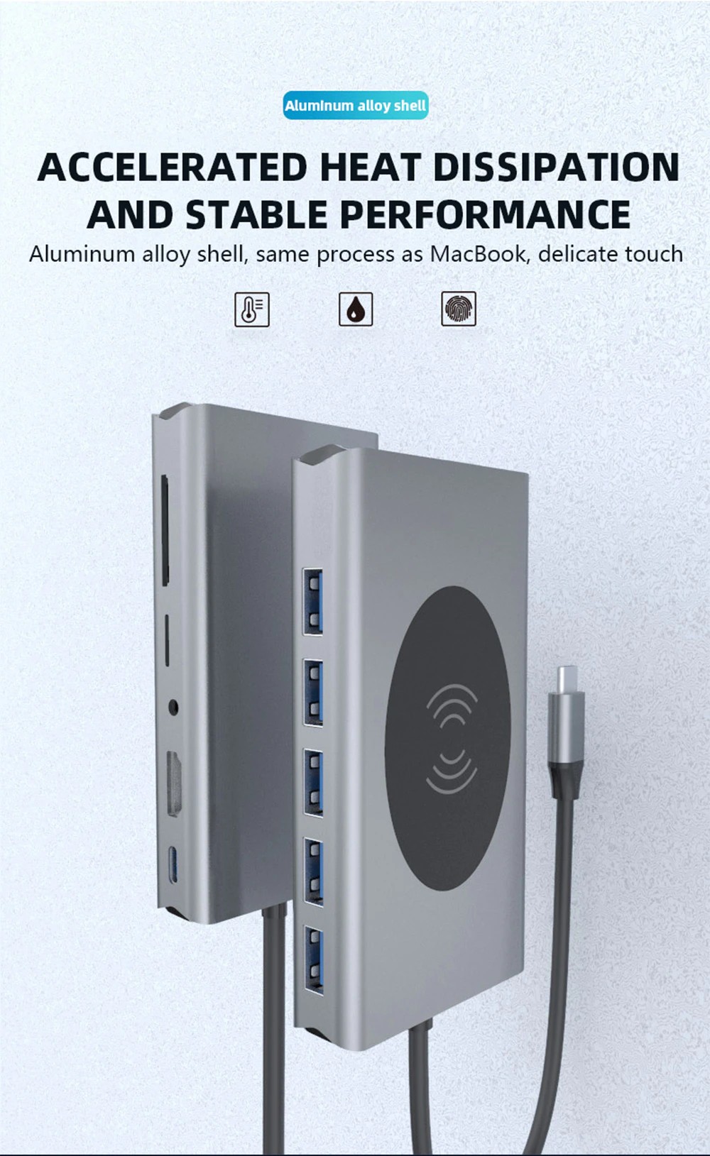 Feature 1 : USB-C to HDMI/Card reader/RJ45/PD Adapter/Wireless charging