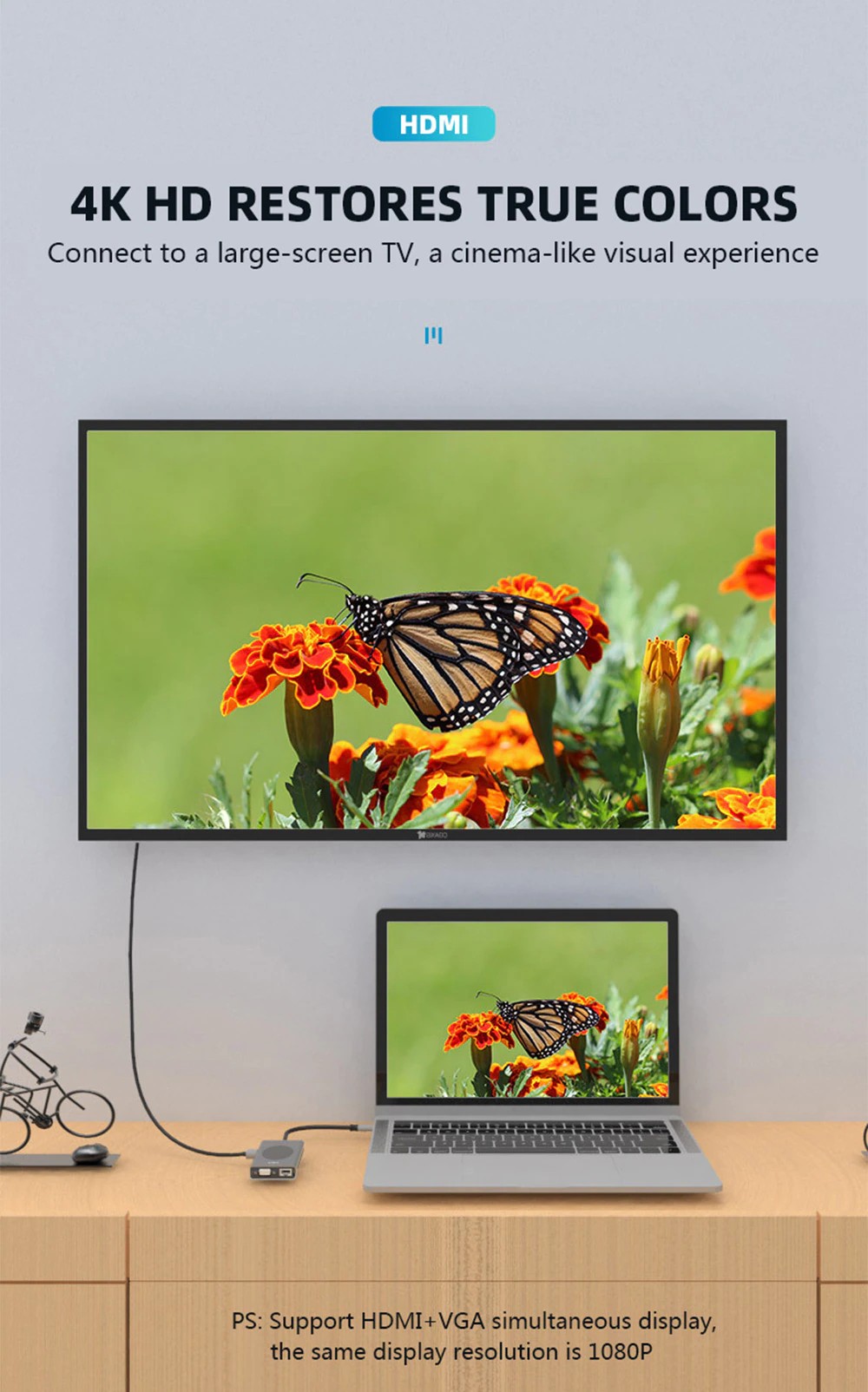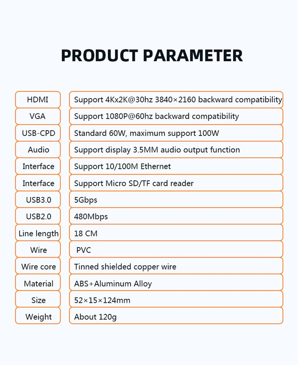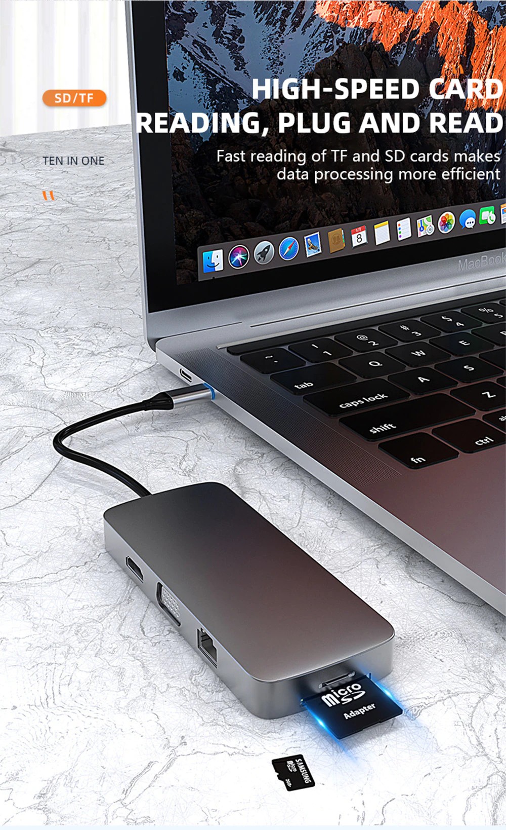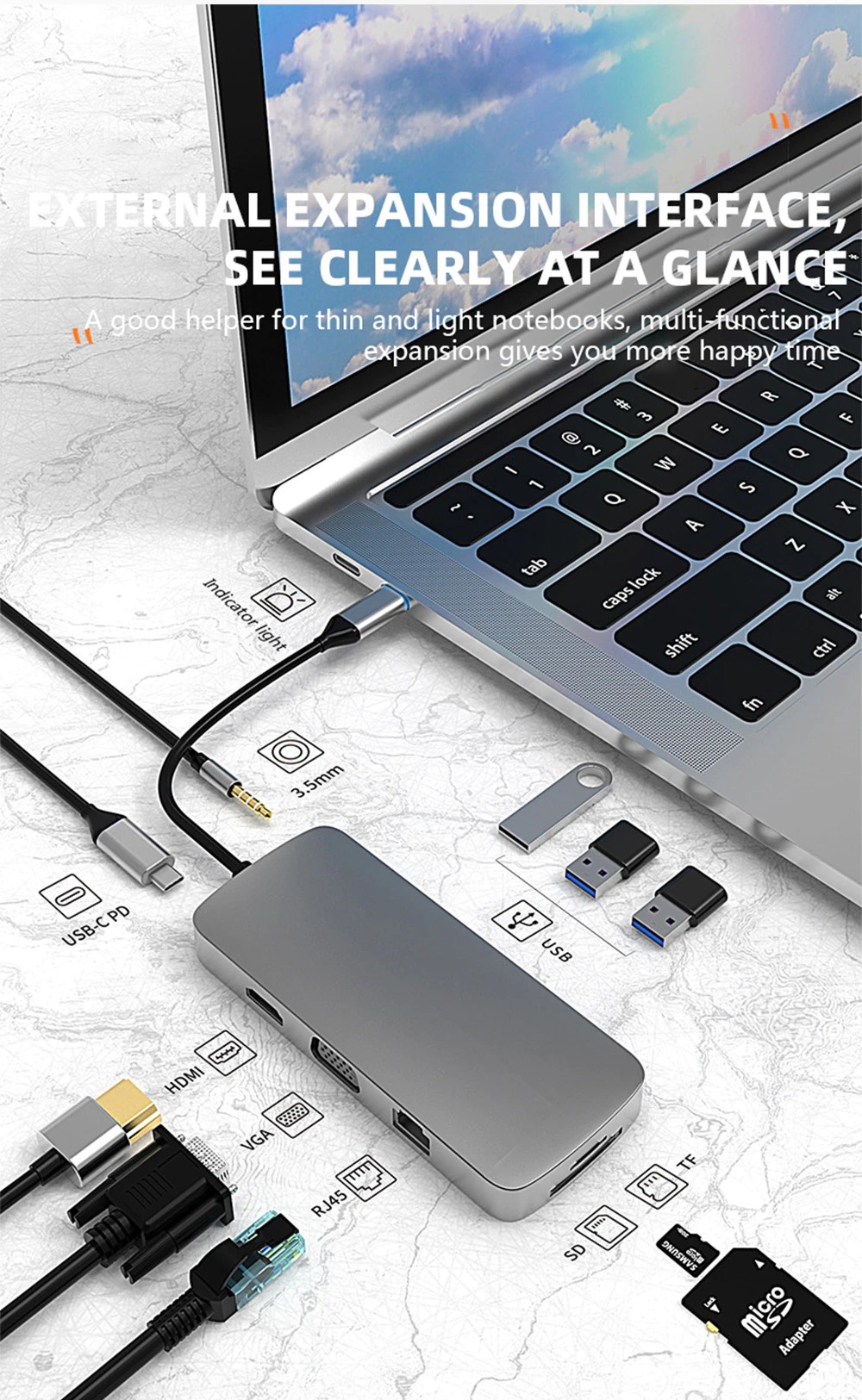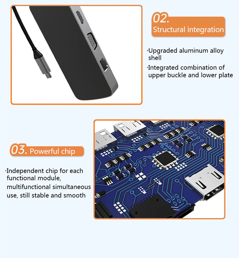 Feature 1 : USB-C to HDMI/Card reader/RJ45/PD Adapter/Wireless charging