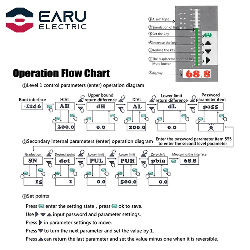 1Set 4-20Ma Output Integral Oil Water Level Sensor Probe Detect With Smart Controller Float Switch Alarm Pump