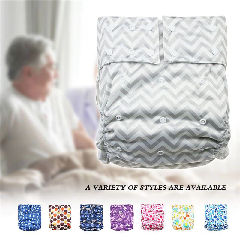 1Set Adult Cloth Diaper Washable Breathable Adjustable Pocket Diaper Reusable Animal Diapers Mat Waterproof Adult Diaper