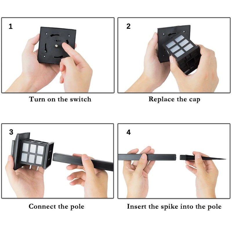 Easy To Install: Turn on the switch under the cap and push the stake into the soil. These solar path lights automatically turn on at night and turn off at dawn!