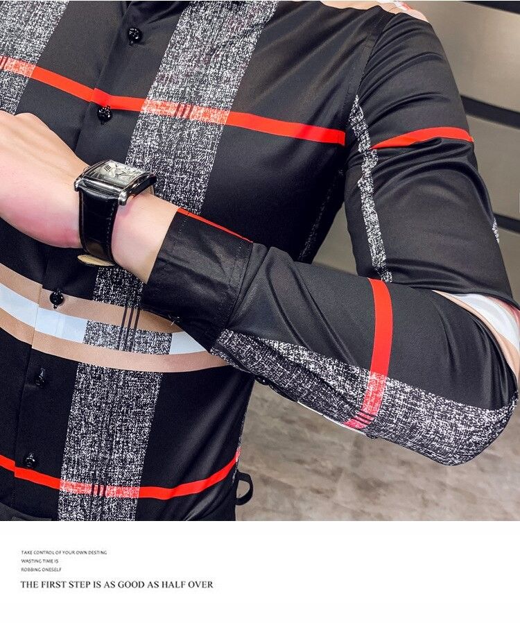 21 Farbe 6Xl Neueste Neue Boutique Mode Gestreiften Schlank Mens Beiläufige Lange Ärmeln Shirts Luxus Hawaiian Urlaub Männlichen Kariertes Hemd