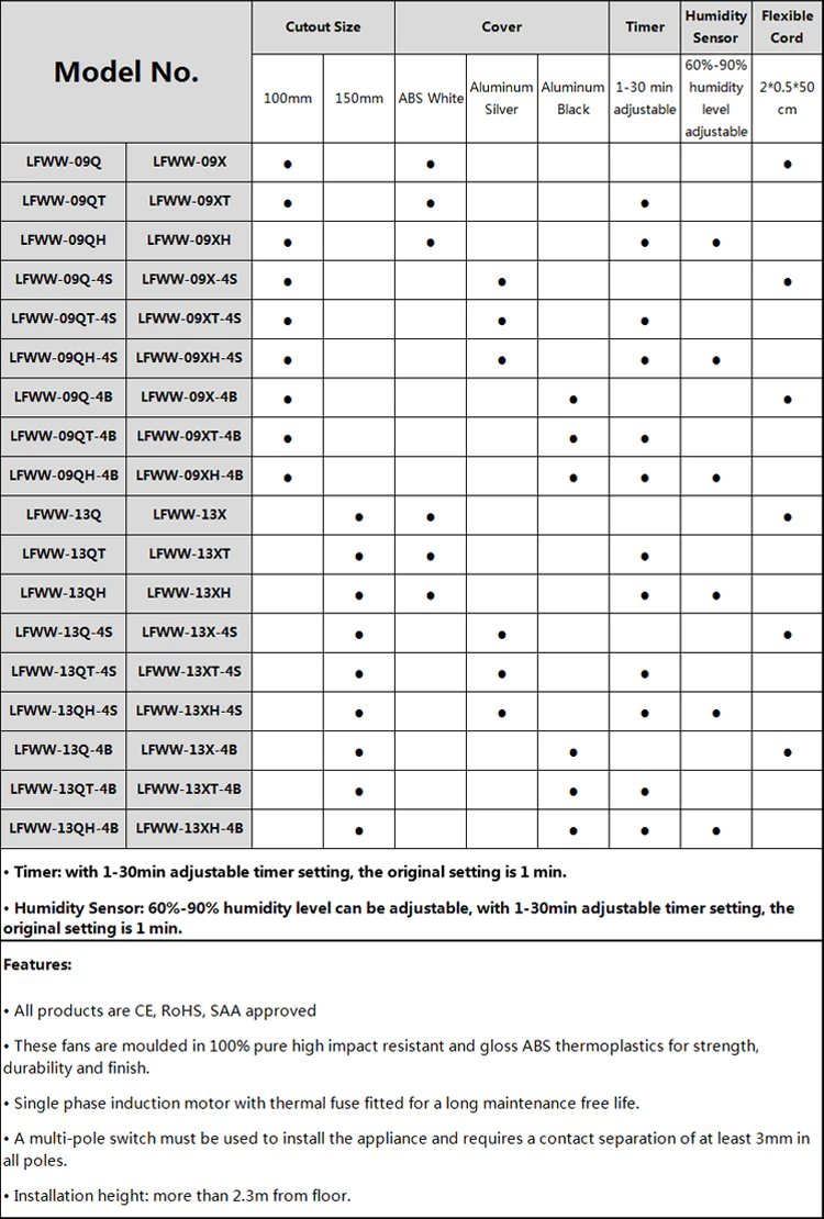 !!!All standard fans are improved with ball bearing motor with thermal protection.