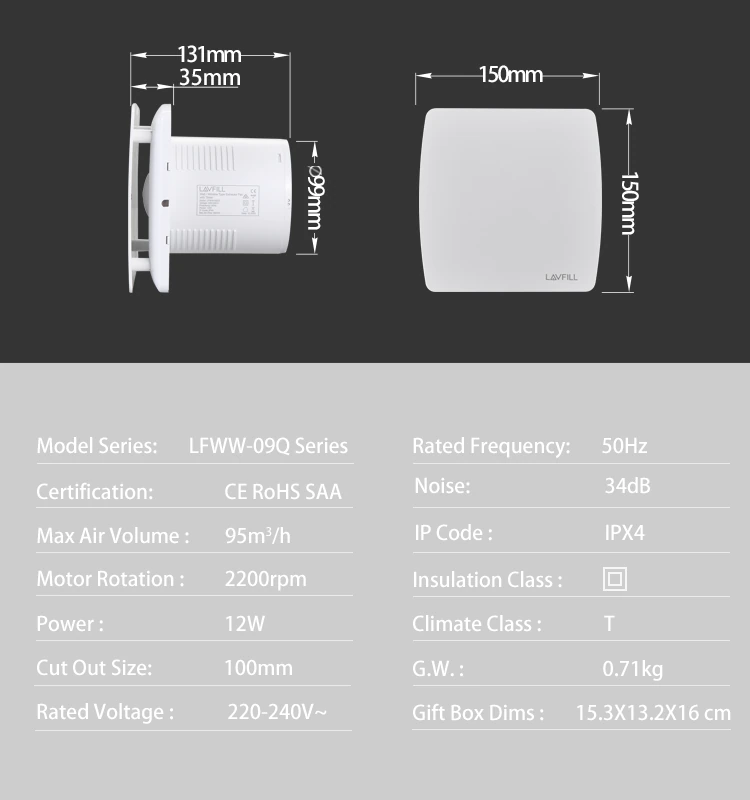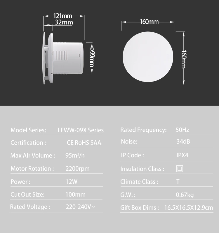 230V 4&Quot; 100Mm Wall Designer Shower Bathroom Extractor Fan Axial Decorative Ventilator Fan