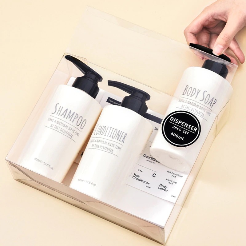 3pcs Liquid Soap Dispenser Bottle Set Shampoo Body Wash Shower Gel Bottle Outdoor Travel Empty Bottle Set 400ml