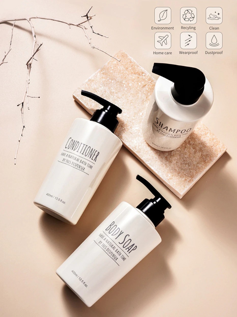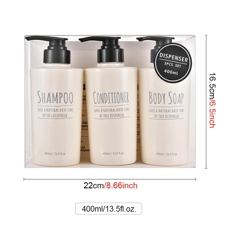 3Pcs Soap Dispenser Bottle Set Shampoo Body Wash Shower Gel Bottle Travel Empty Bottle Set 400Ml