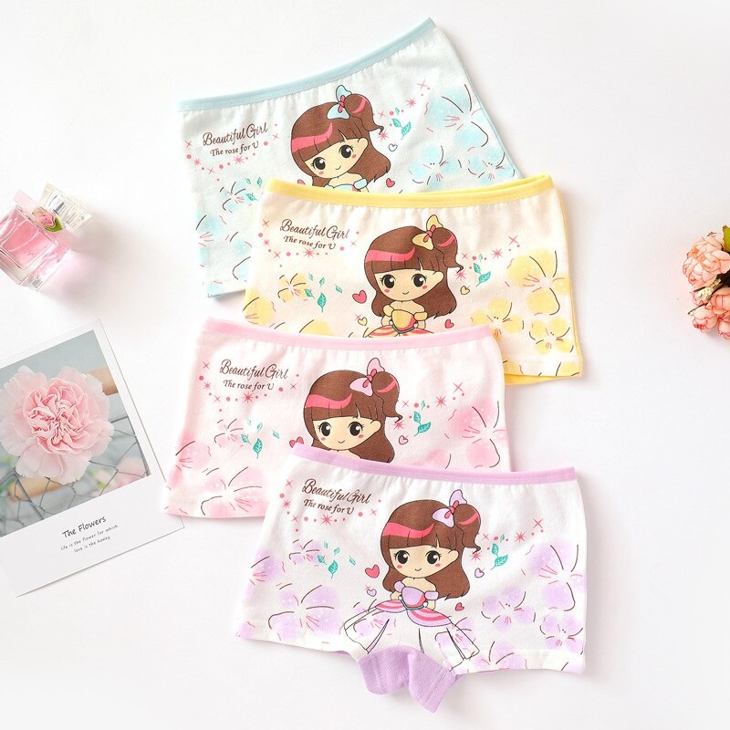 4 Pieces/Lot 2-12Y Children High Quality Cotton Girls Panties Cute Cat Pattern Kids Briefs Child Soft Girl Pants