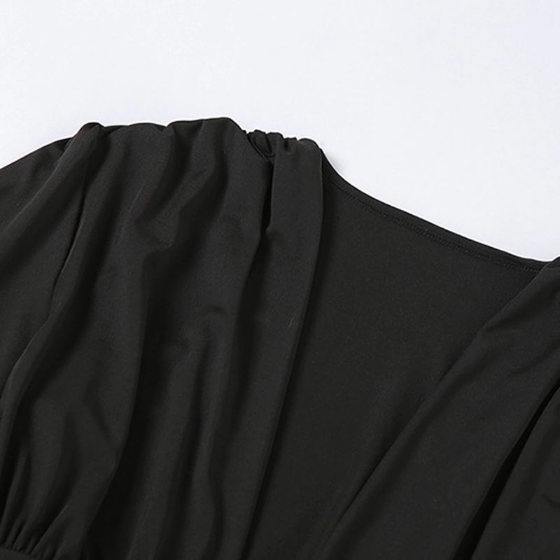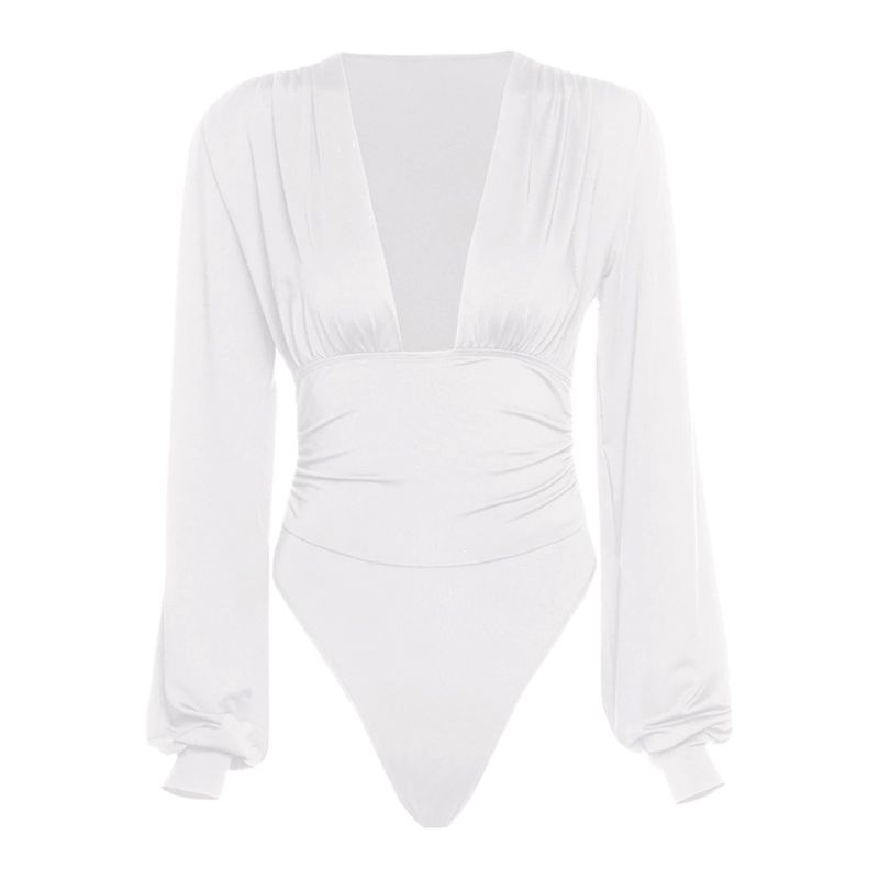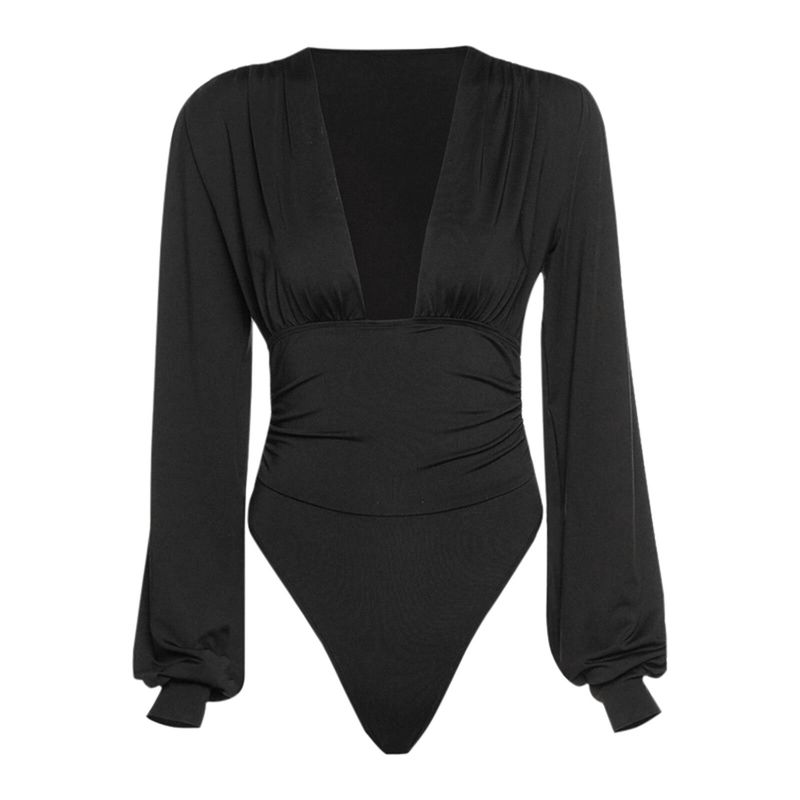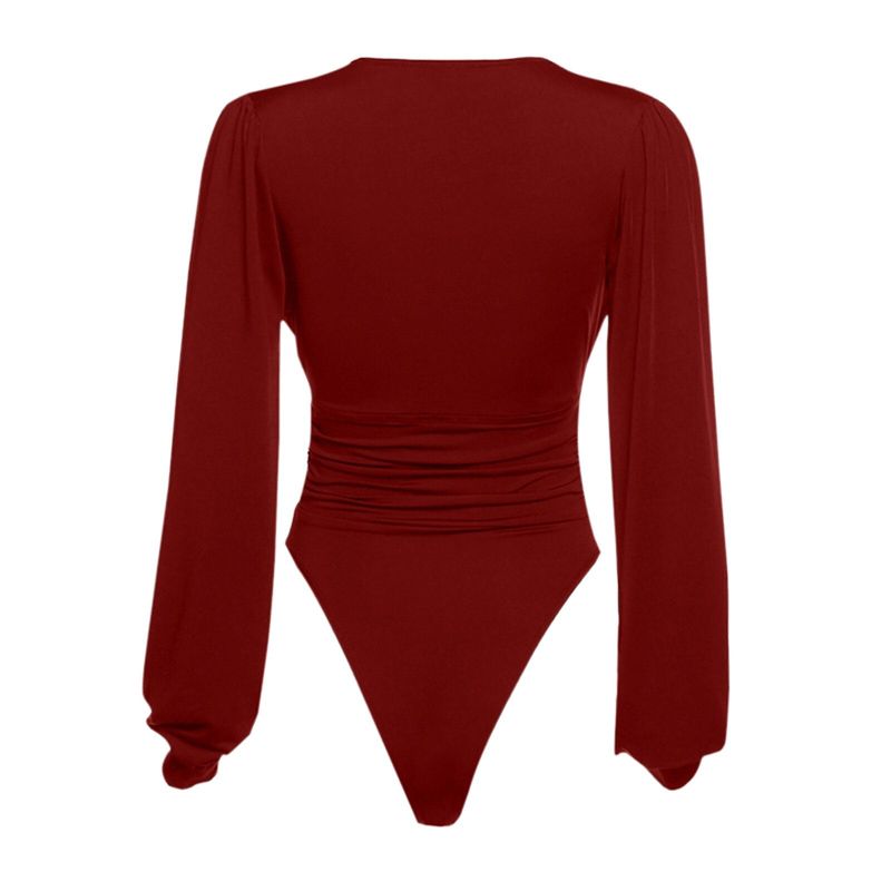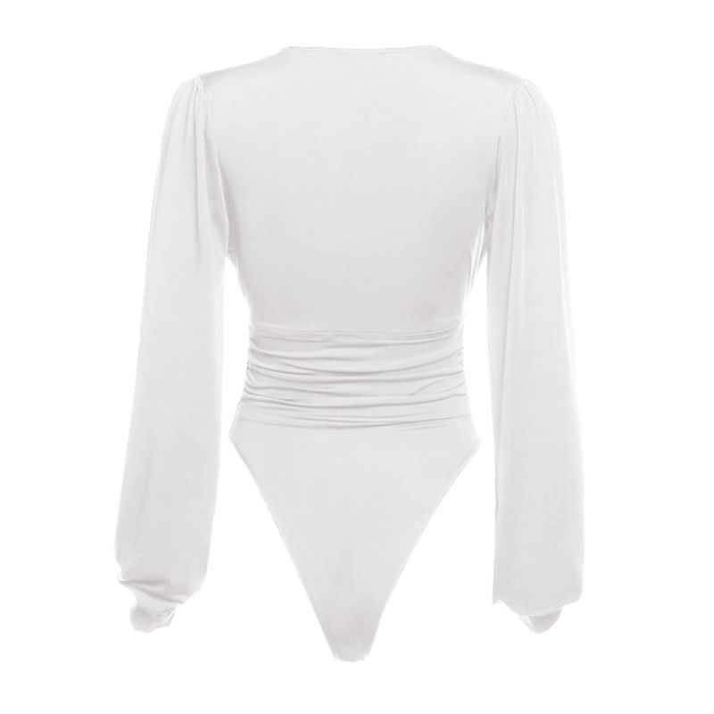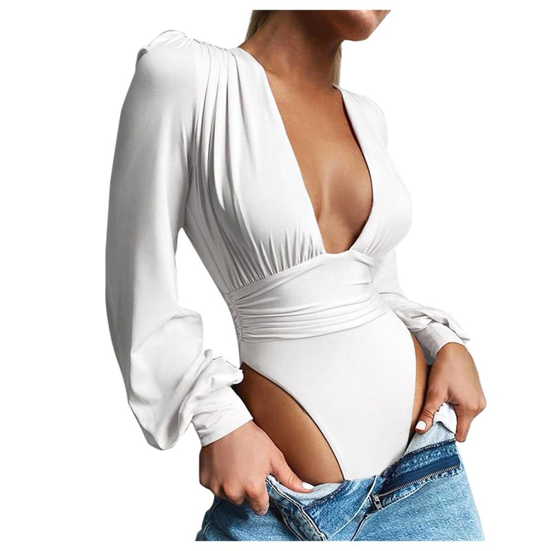 Women Sexy Low-Cut Solid Color Slim Long-Sleeved Jumpsuit Top