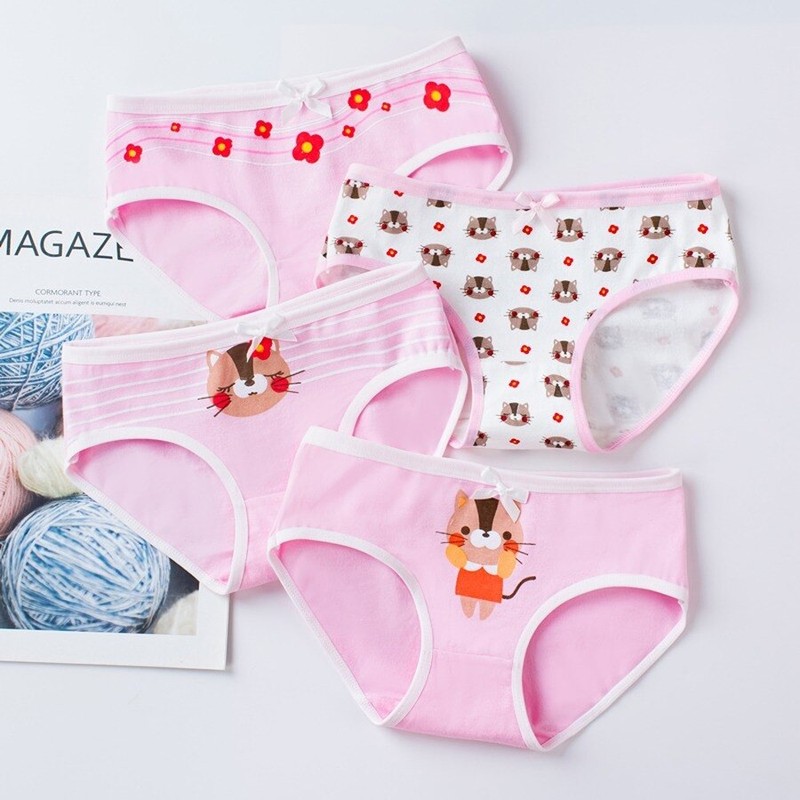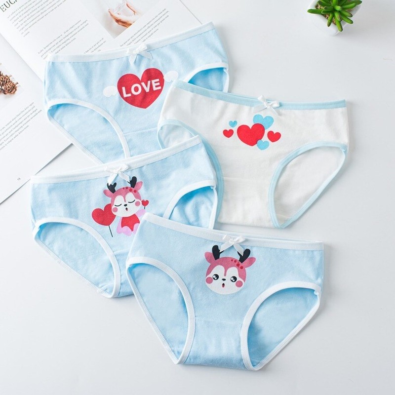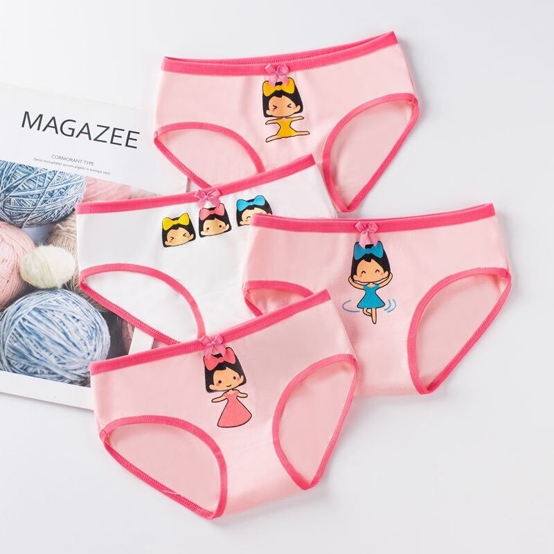 4Pc/Lot Cotton Panties For Kid Girls Cartoon Soft Panties Children Teenage Briefs Comfortable