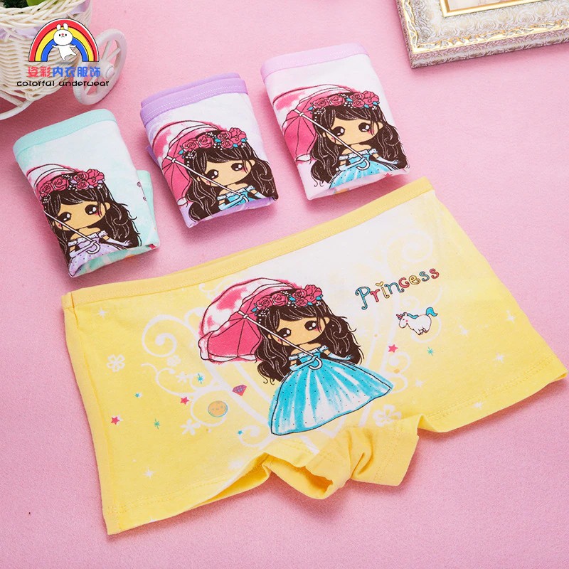 4Pcs Girls Cartoon Boxes Children Cotton Cute Printing Panties Kids Short Panties Girl Briefs Size 2T-10T