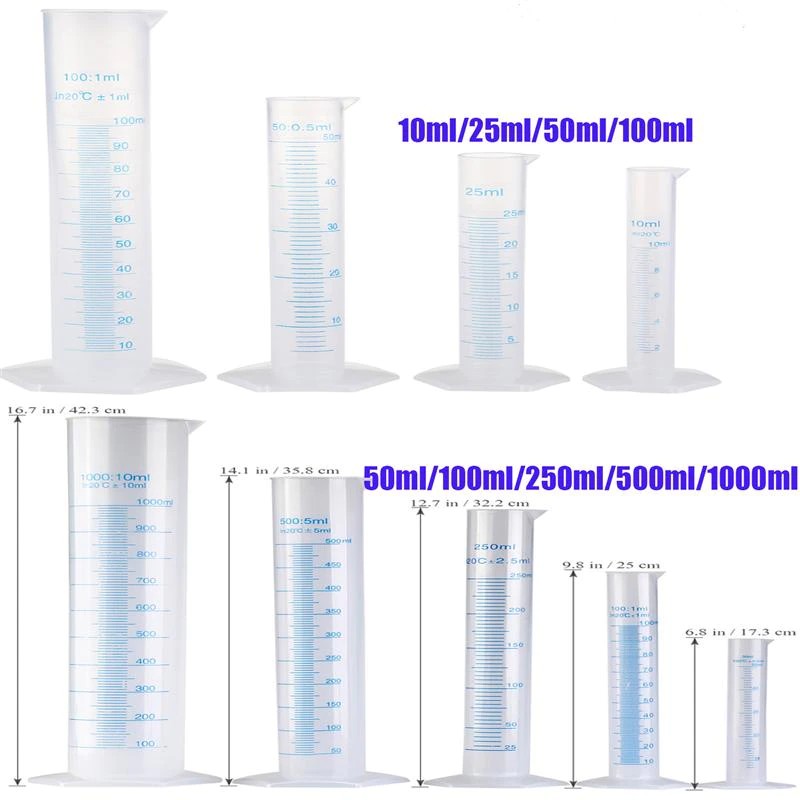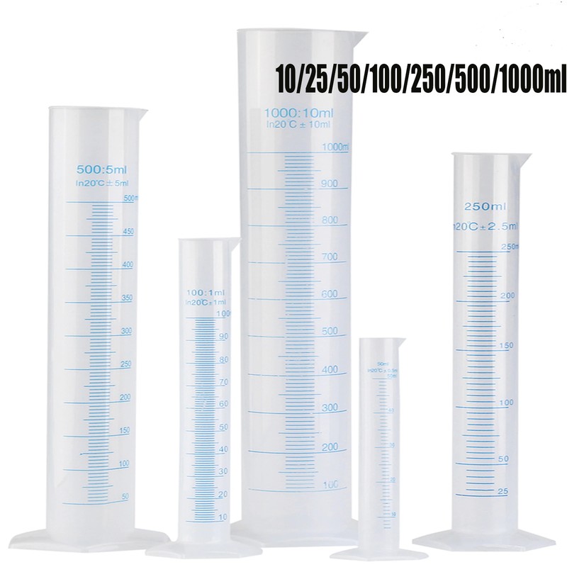 4 * PIXNOR Transparent Measuring Plastic Graduated Cylinder 10ml / 25ml / 50ml / 100ml