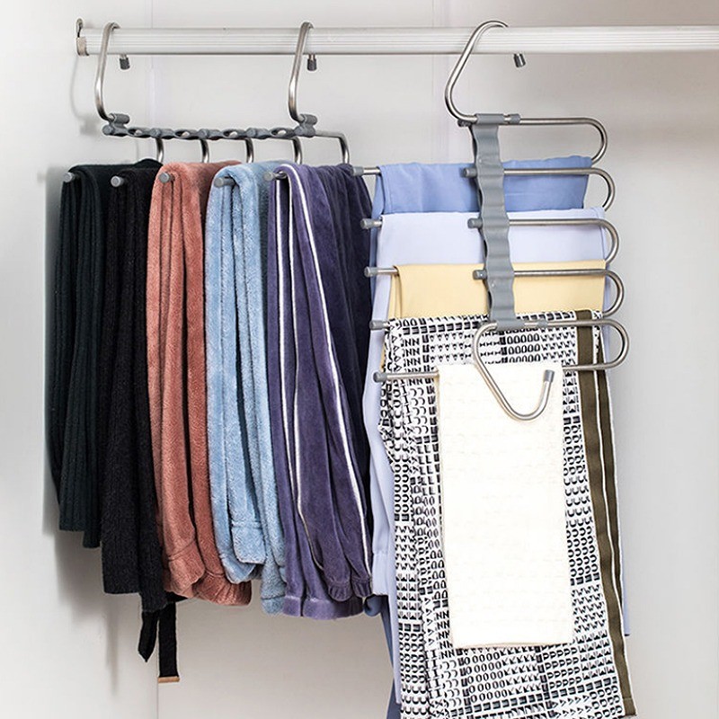 5 in 1 Pant Rack Hanger for Clothes Organizer Multifunction Shelves Closet Storage Organizer StainlessSteel Magic Trouser Hanger