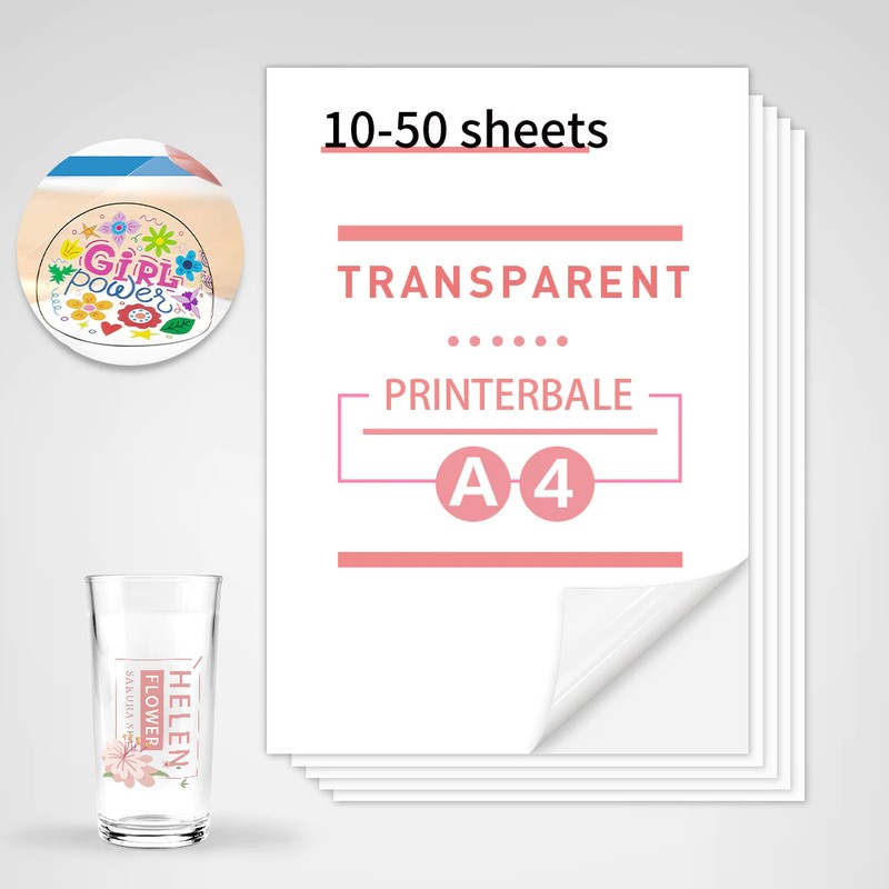 50 Sheets A4 Printable Vinyl Sticker Paper Transparent Vinyl Sticker Printer Paper Clear Label Paper For Laser Printer