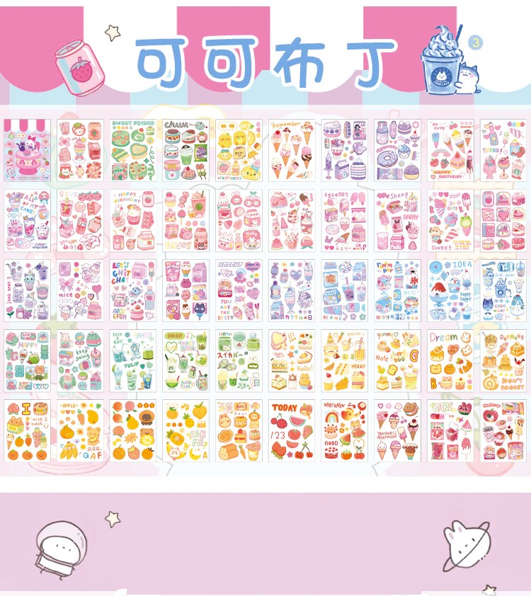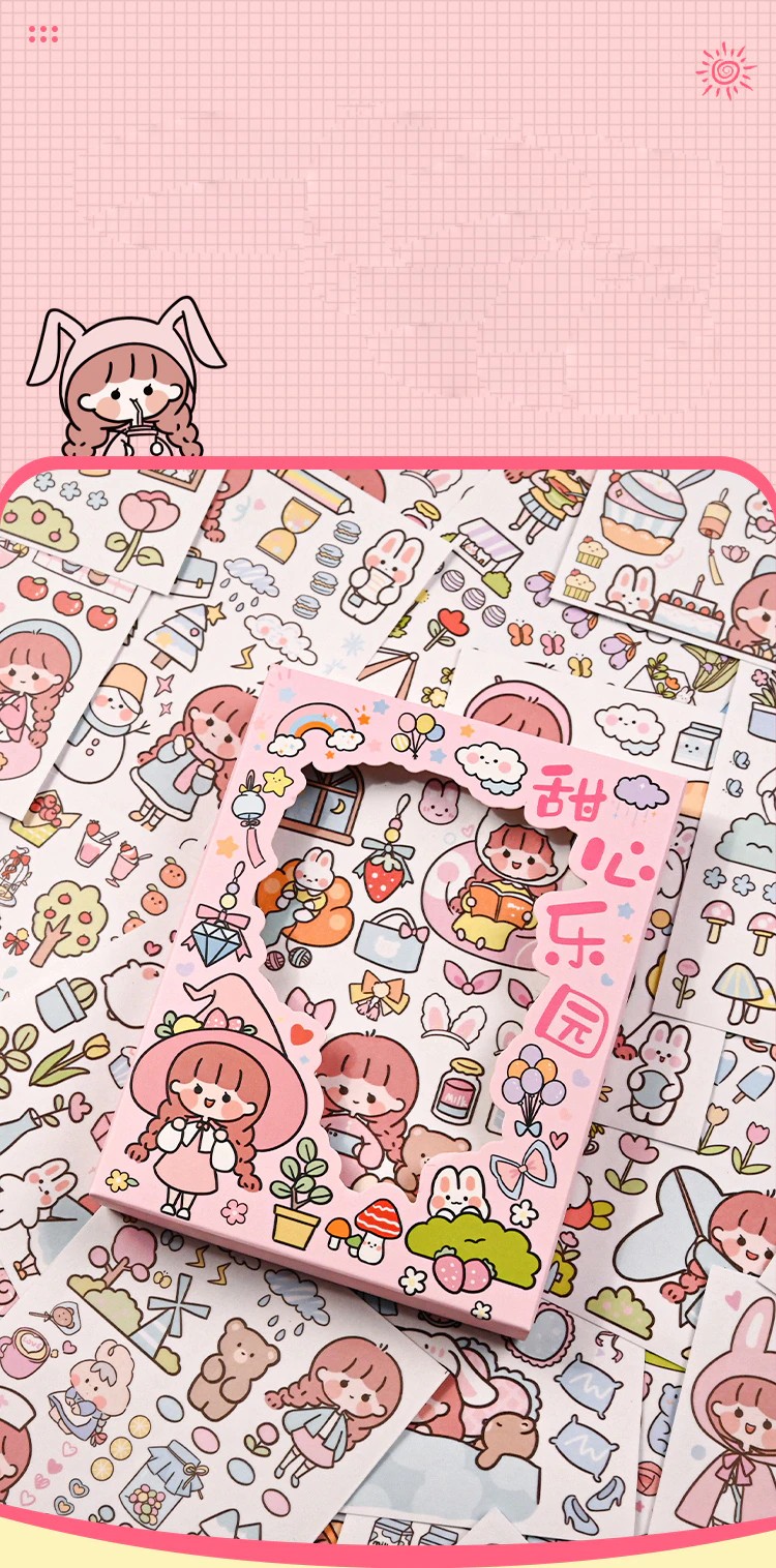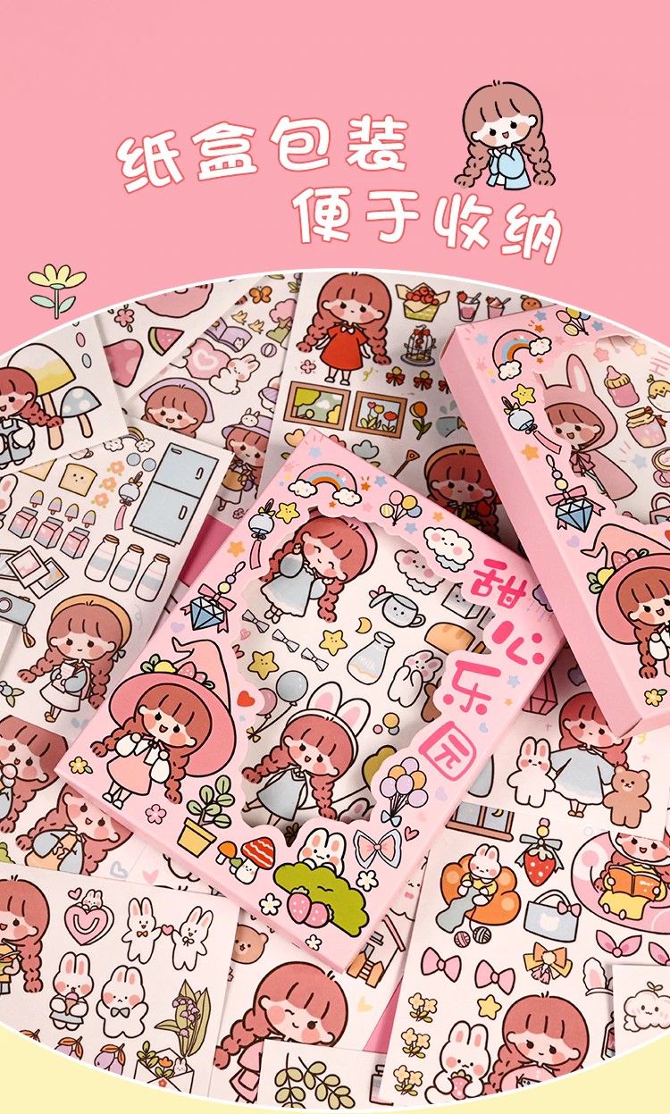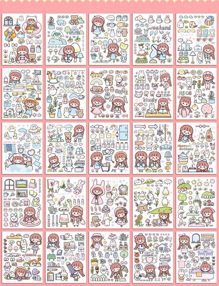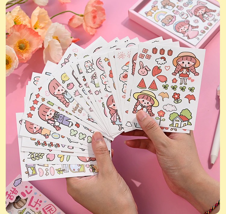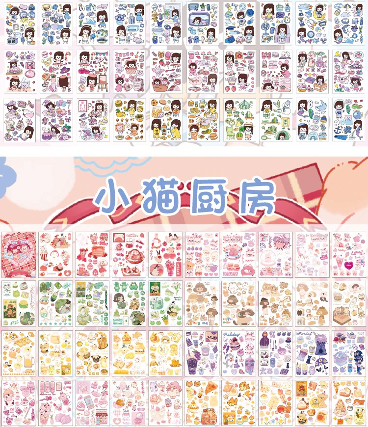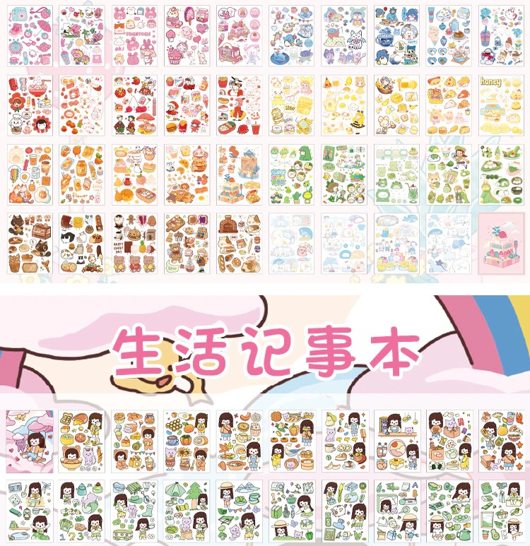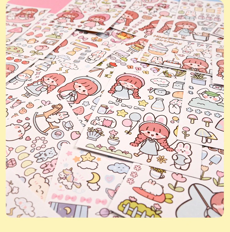 50 Sheets Cute Girl Hand Account Stickers Set Diy Decoration Kawaii Hand Account Notebook Cup Pattern Stickers