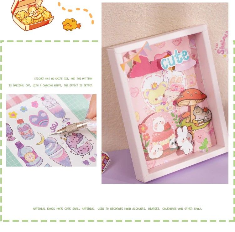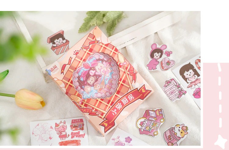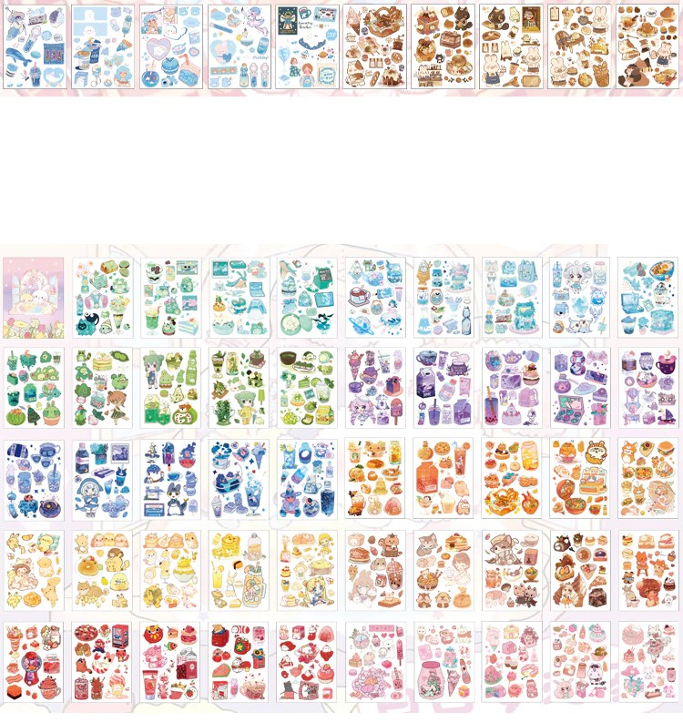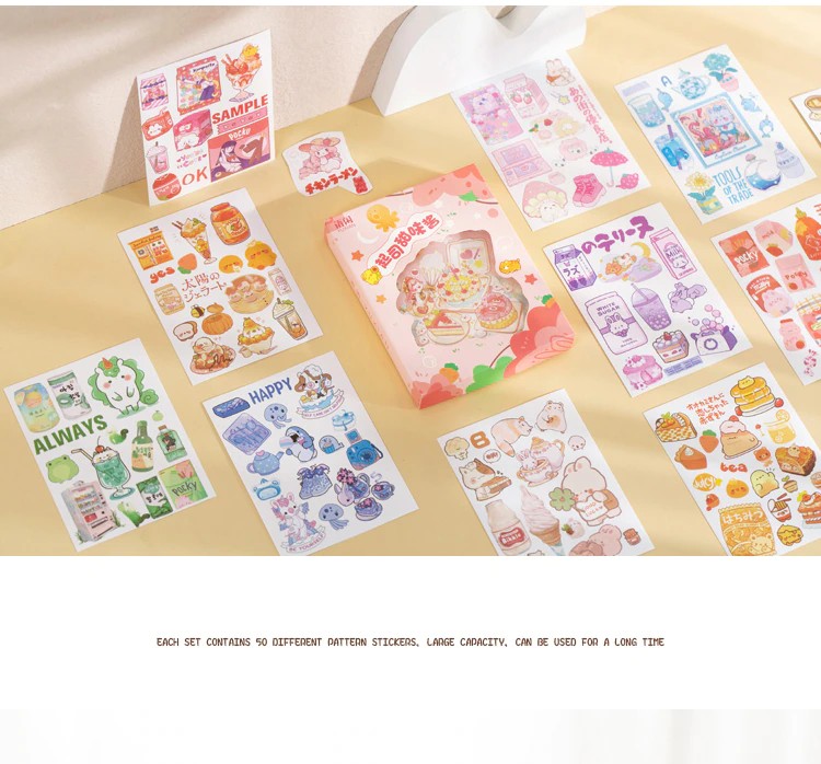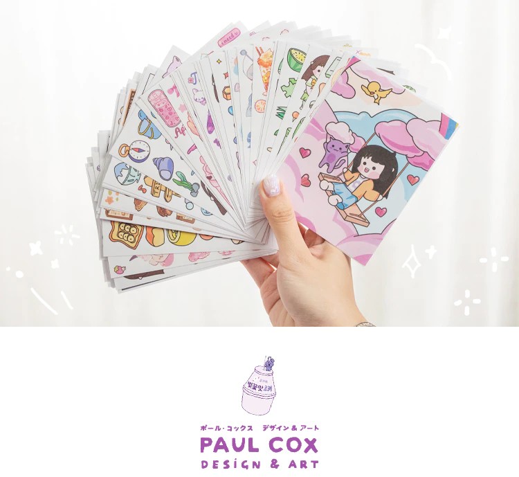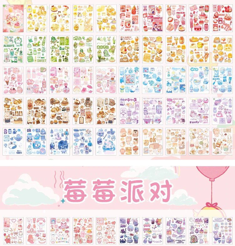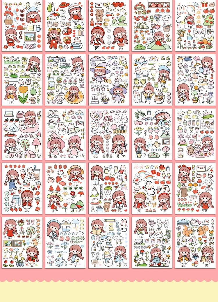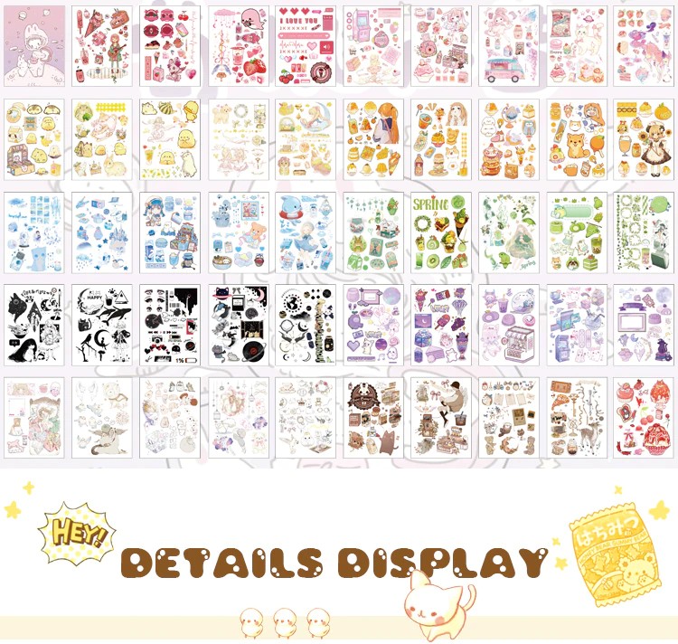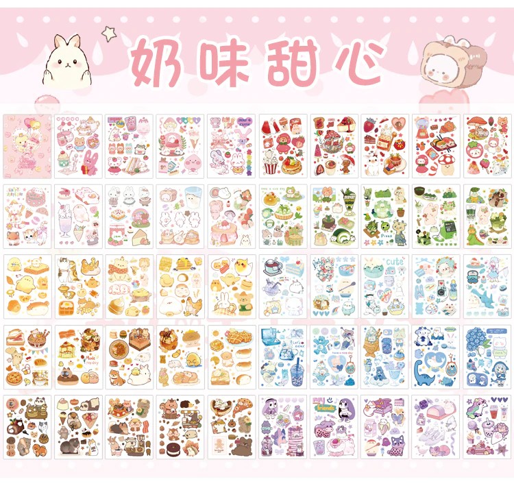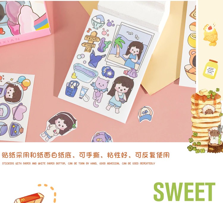 50 Sheets Cute Girl Hand Account Stickers Set Diy Decoration Kawaii Hand Account Notebook Cup Pattern Stickers