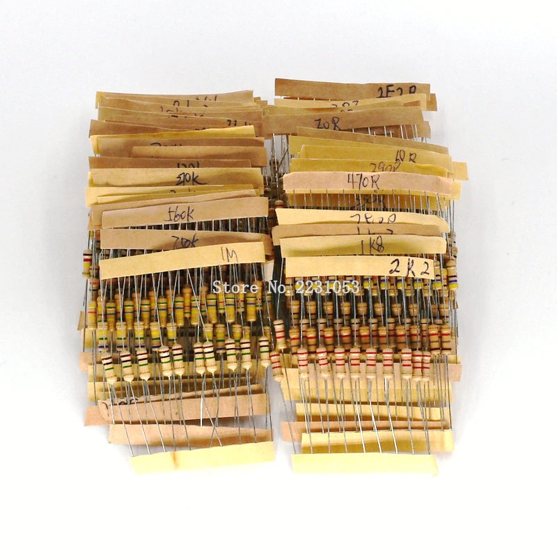 Package include: 500 x Resistors 50 Value Carbon Film Resistors Assorted Kit Set 1.2Ω 2.2Ω 3Ω 3.3Ω 5.1Ω 6.8Ω 8.2Ω 12Ω 20Ω 22Ω 27Ω 33Ω 43Ω 51Ω 68Ω 82Ω 270Ω 330Ω 390Ω 430Ω 470Ω 750Ω 1.2KΩ 1.8KΩ 2.2KΩ 3KΩ 4.3KΩ 5.1KΩ 6.8KΩ 8.2KΩ 10KΩ 15KΩ 20KΩ 27KΩ 36KΩ 39KΩ 47KΩ 56KΩ 75KΩ 82KΩ 120KΩ 150KΩ 270KΩ 300KΩ 360KΩ 430KΩ 510KΩ 560KΩ 750KΩ 1MΩ