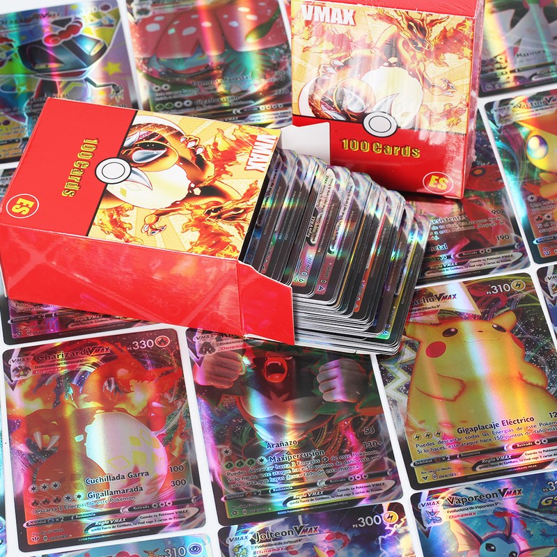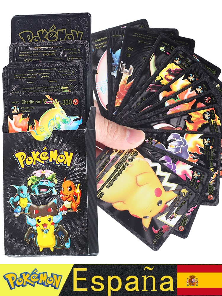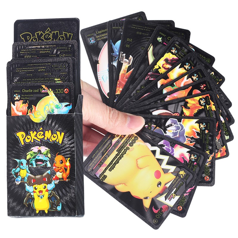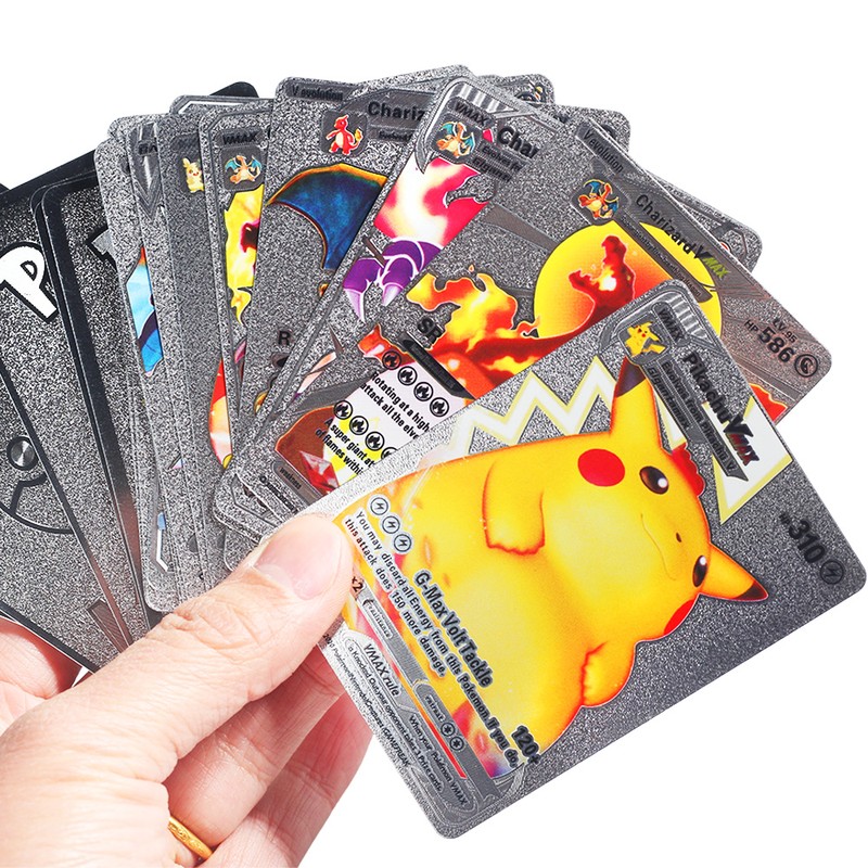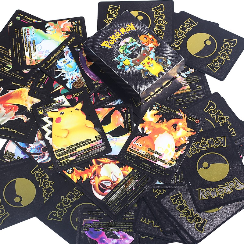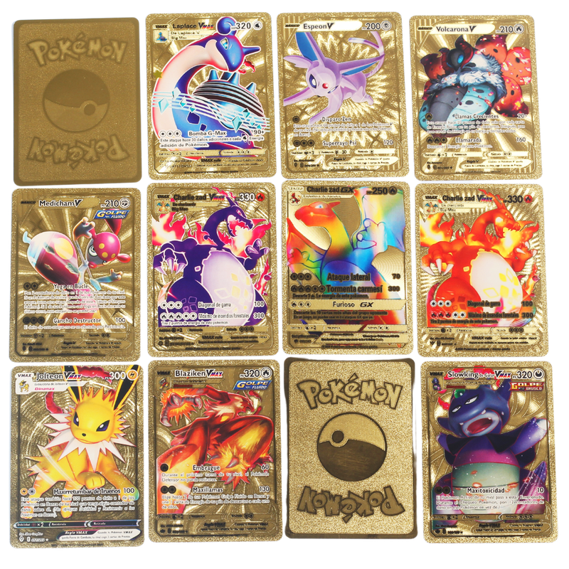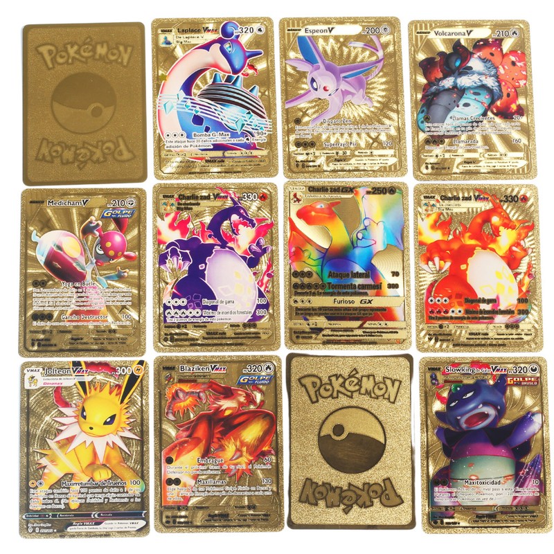 54Pc Cartas Pokemon Metal Gold Card Box Golden Letters Playing Cards Vmax Gx Collection Toy