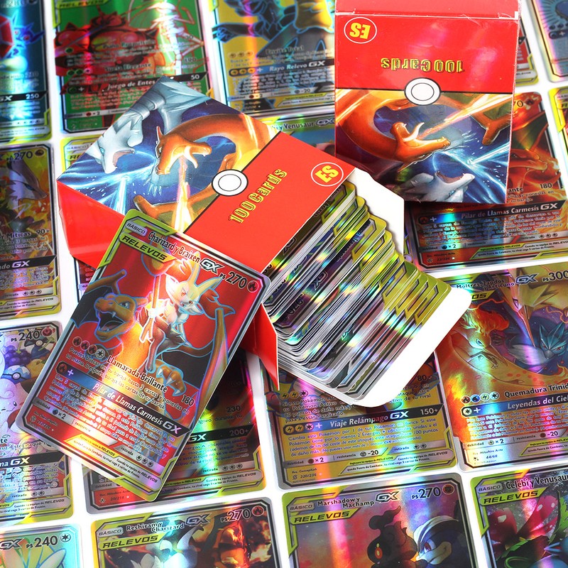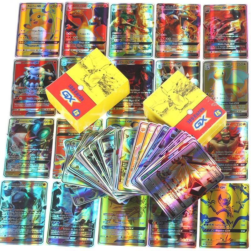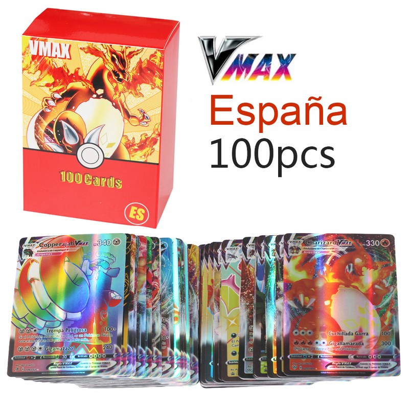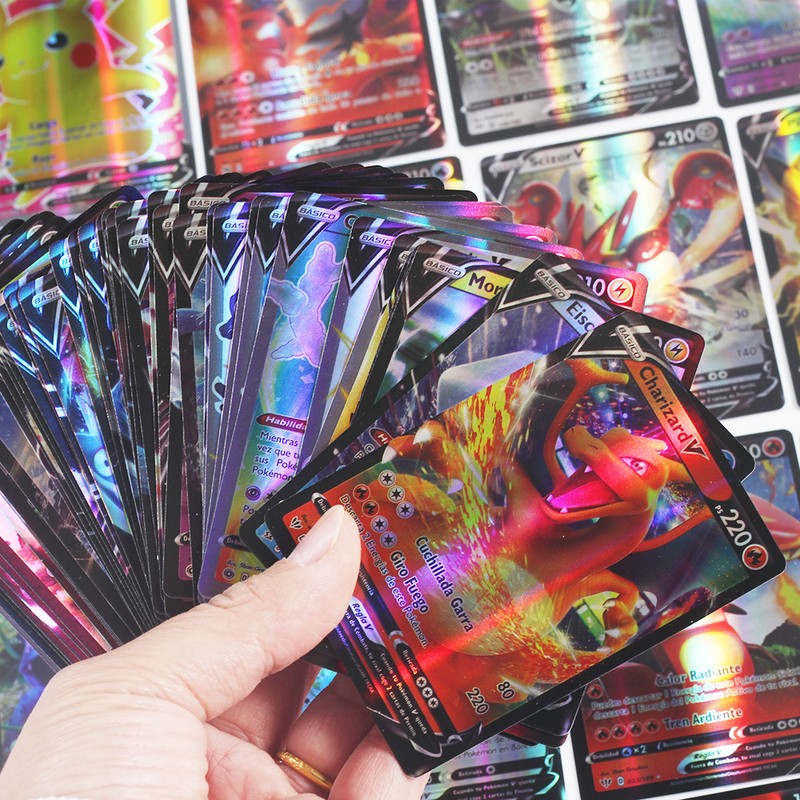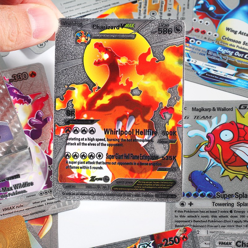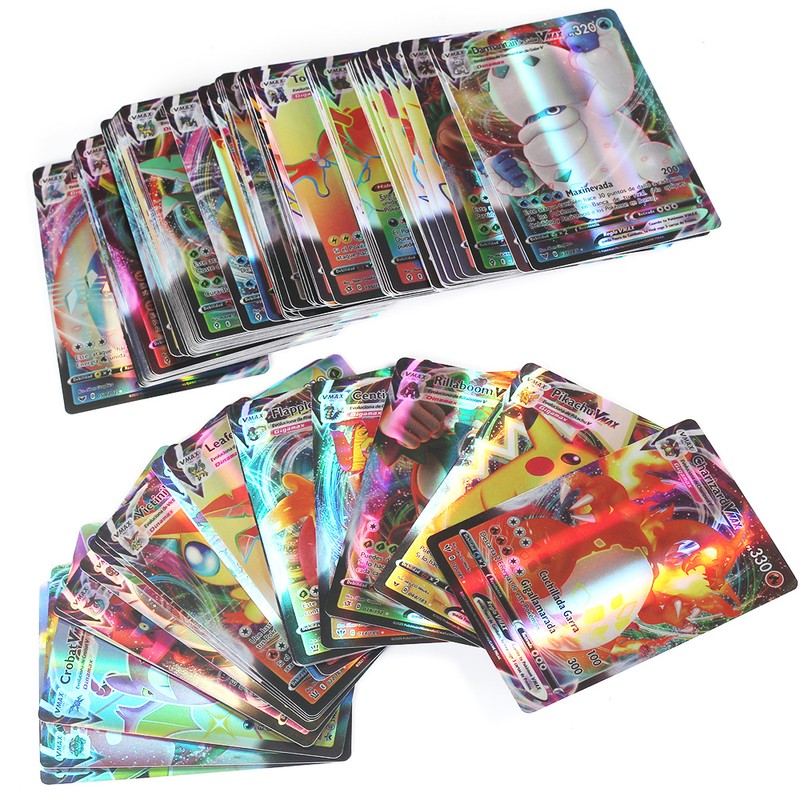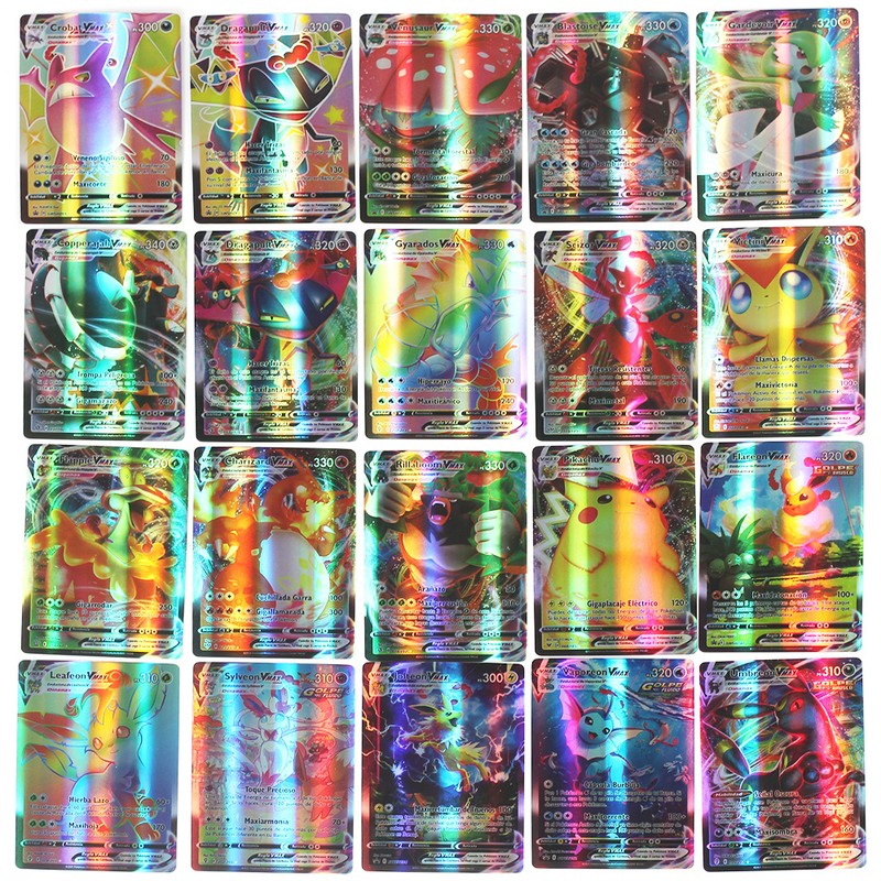 54Pc Cartas Pokemon Metal Gold Card Box Golden Letters Playing Cards Vmax Gx Collection Toy