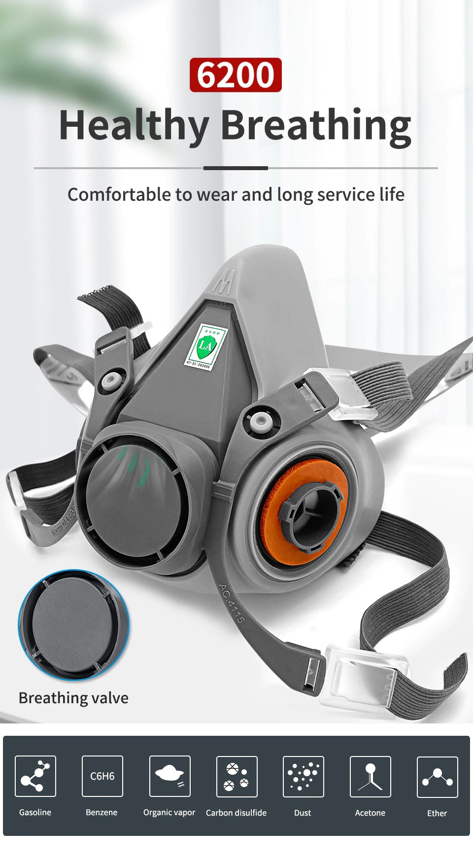 6200 Gas Mask For Spray Paint Decoration Chemical Dust Mask Body Protect Toxic Steam Filter Respirator Reusable Half Mask