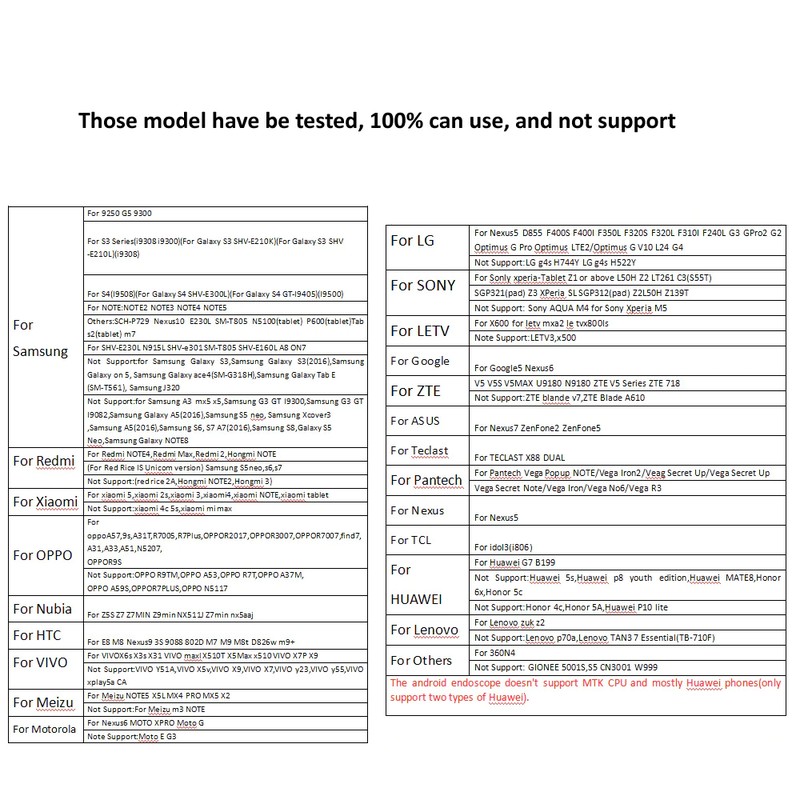 당신의 안드로이드 전화를 사용할 수없는 경우, 더 다른 안드로이드 폰으로 테스트하시기 바랍니다. 안드로이드 폰이 제대로 볼 수 있거나 컴퓨터에서 볼 수 있다는 것을 보장하지 않습니다. 당신은 또한 무선 내시경의 우리의 와이파이 버전을 살 수 있습니다, 우리의 링크를 확인하십시오.