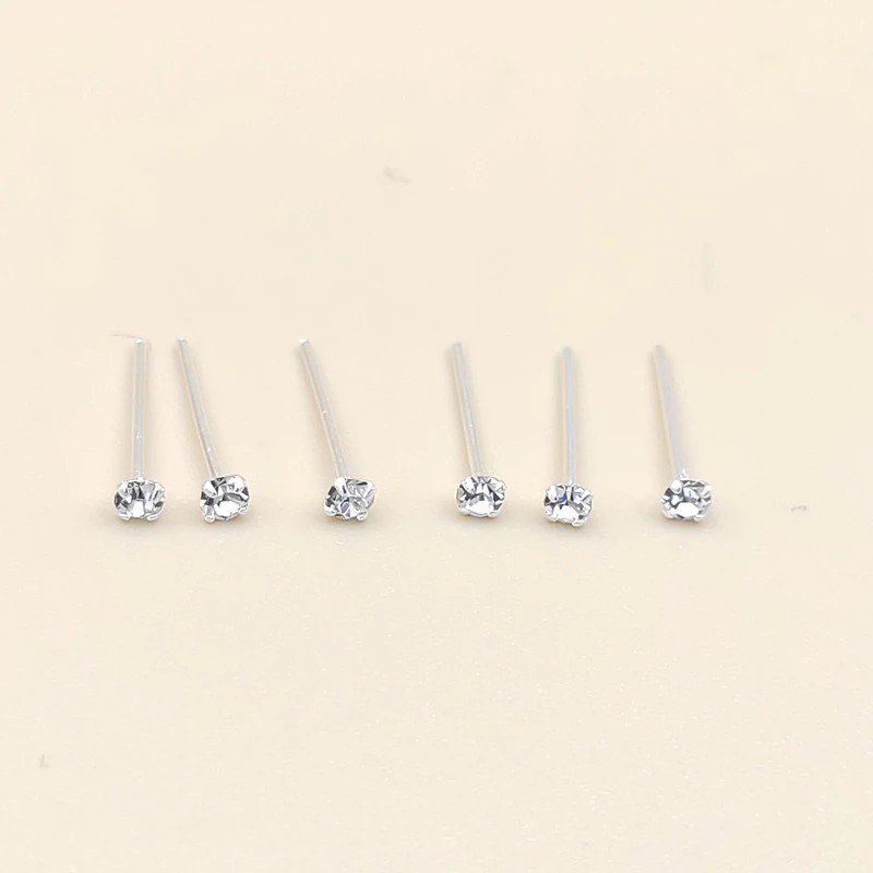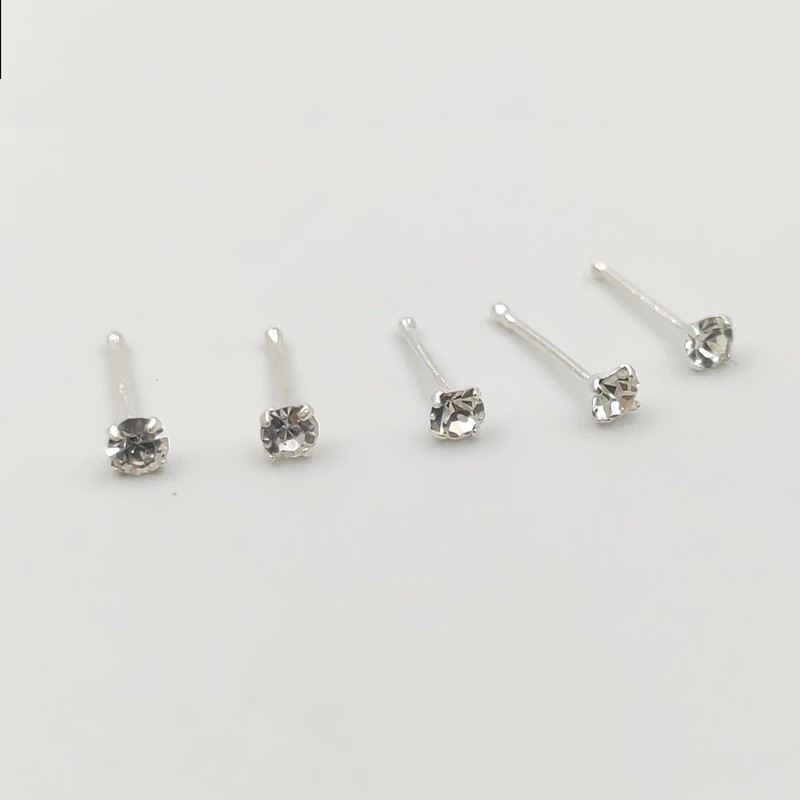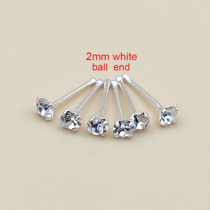 925 Sterling Silver 2Mm Clear Crystal Nose Stud Nose Piercing Pin Body Jewelry 20Pcs/Pack