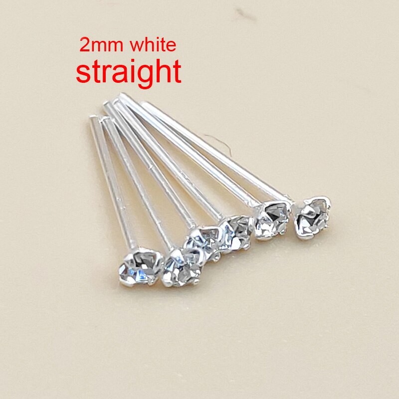 Straight nose stud Size: 2.0mm crystal, 0.5mm (24 gauge) pin, Nose pin 10mm