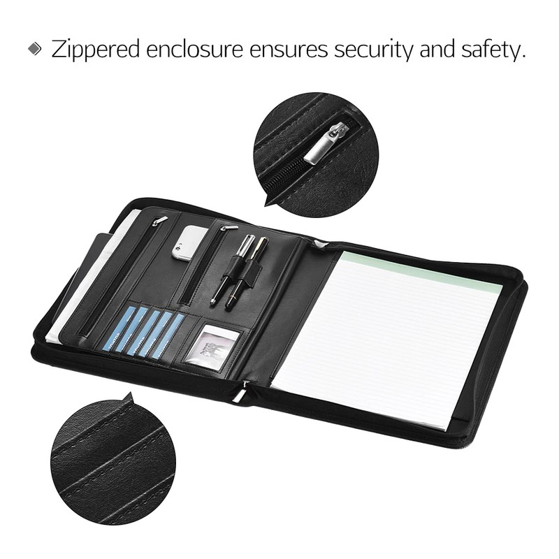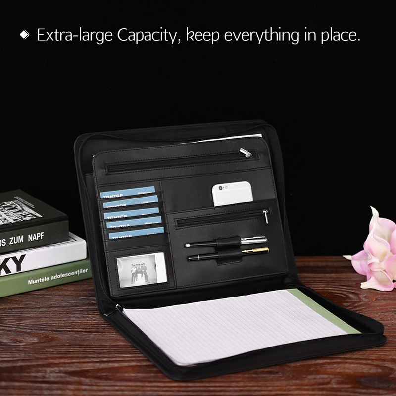 Includes pockets for A4 files, pad, cellphone, name cards, credit cards, money, etc. Keep everything in order and make your study/work organized.