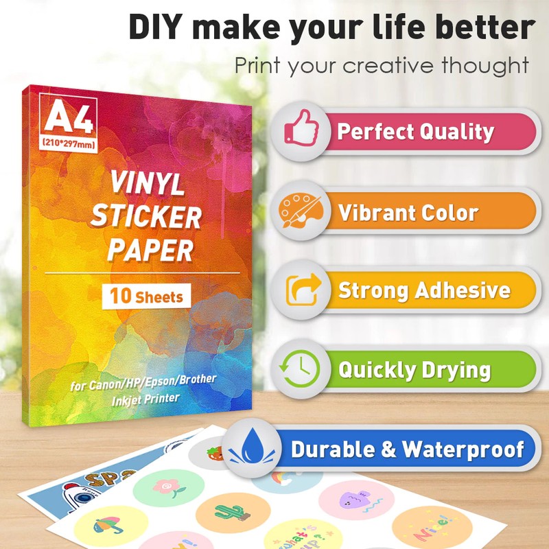 A4 Paper Sheets Adhesive Printable Label Sticker Paper Glossy For Printer White Vinyl Label Copy Paper Gift Sticker