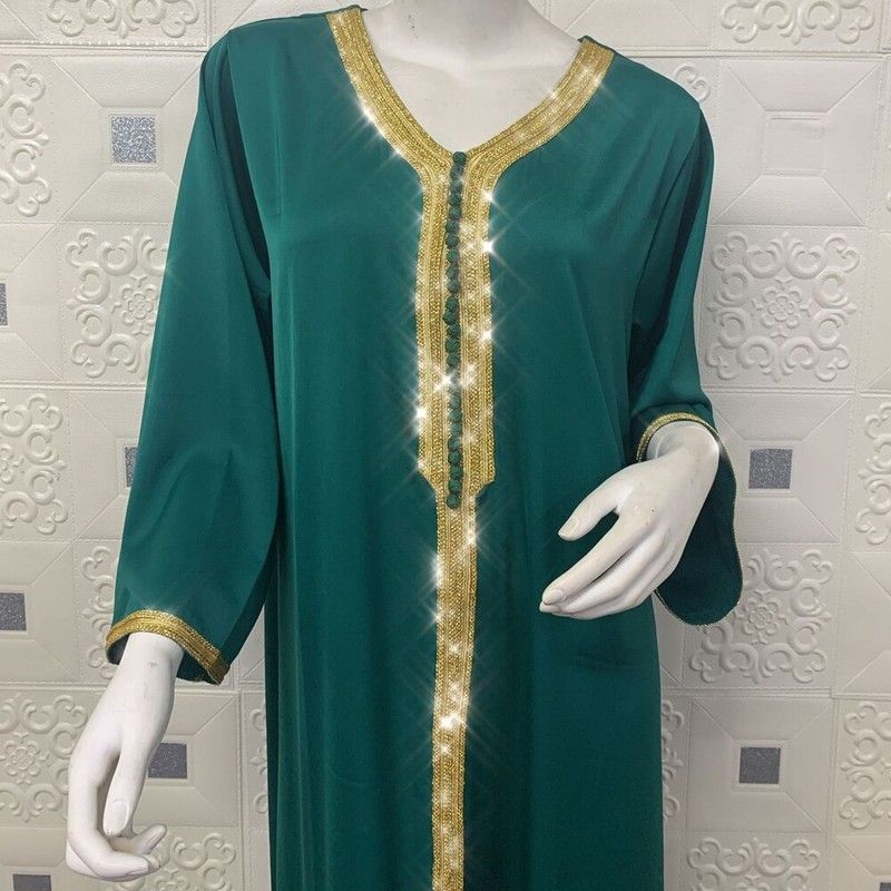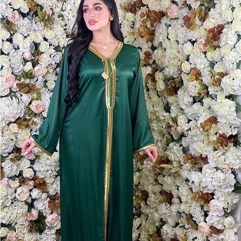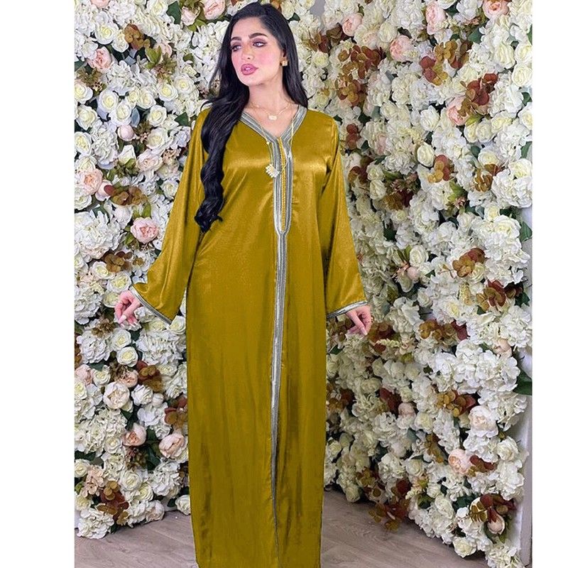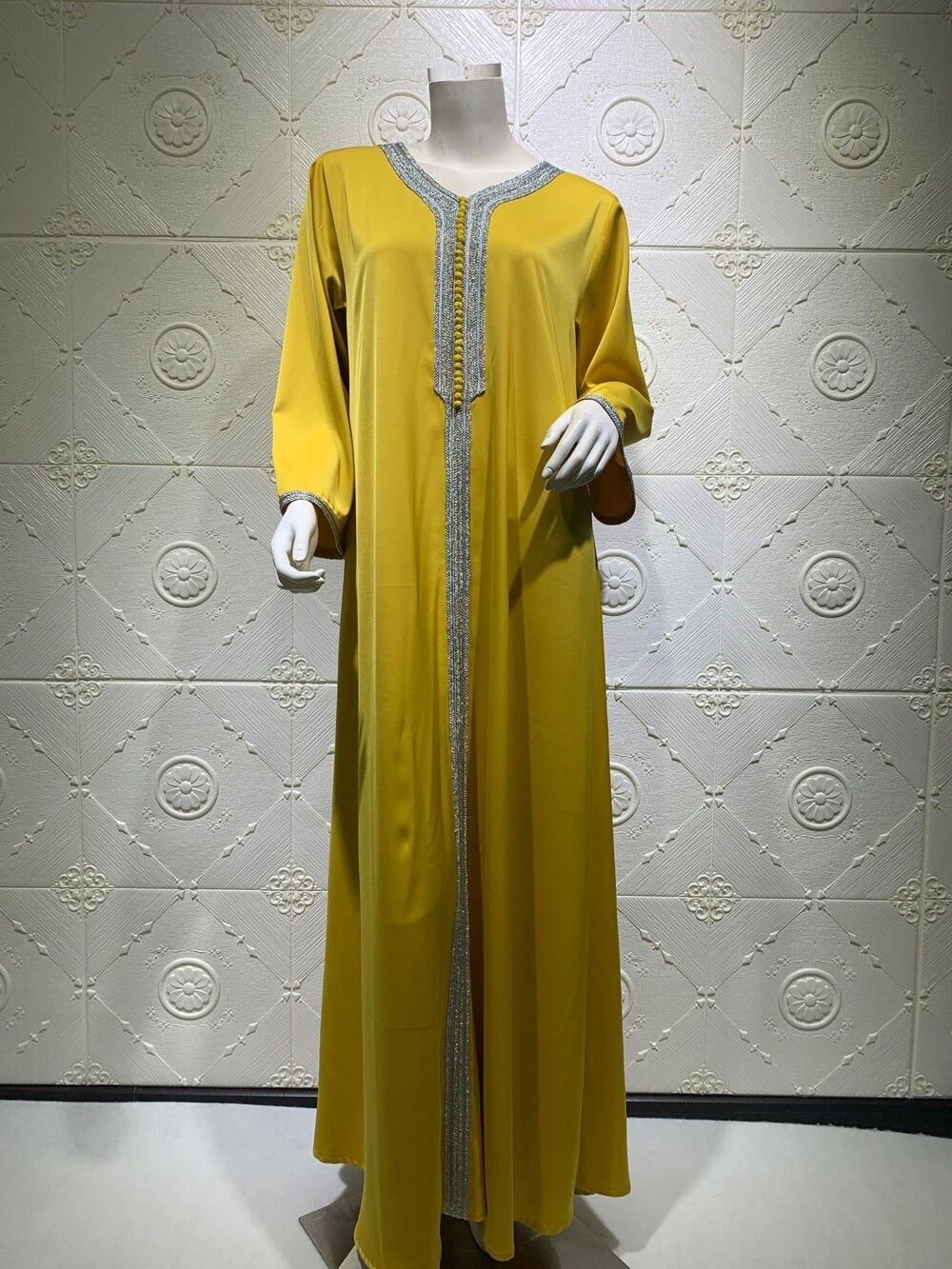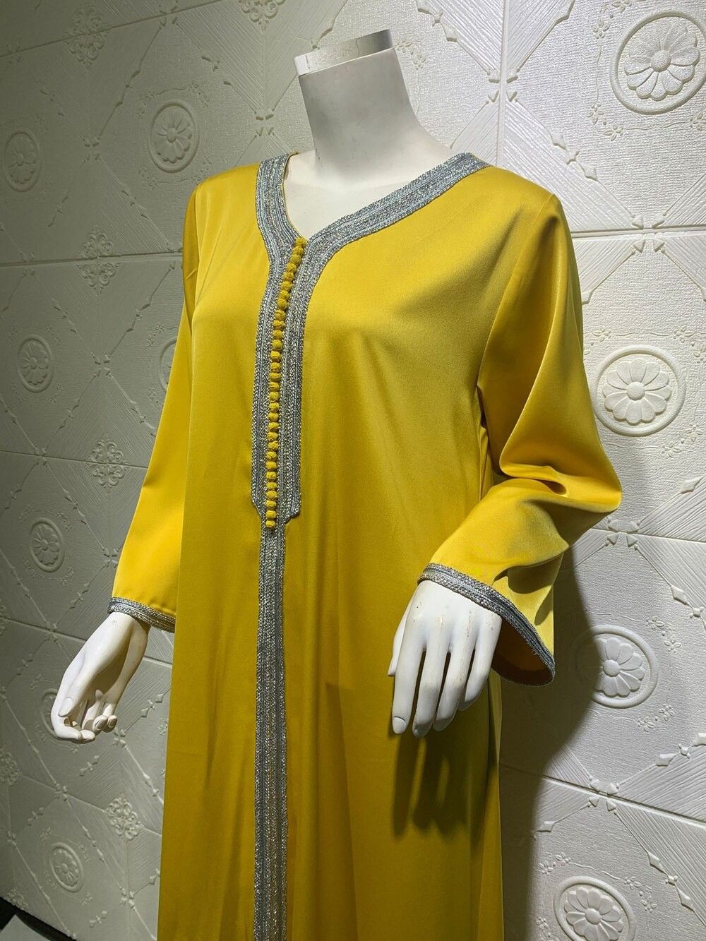 Ab010 Kebaya Newest Muslim Woman Long Dress Hijab Set Female Arabic Prayer Clothing World Apparel Store Robe Gala Green Yellow