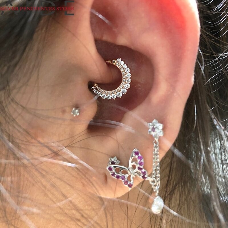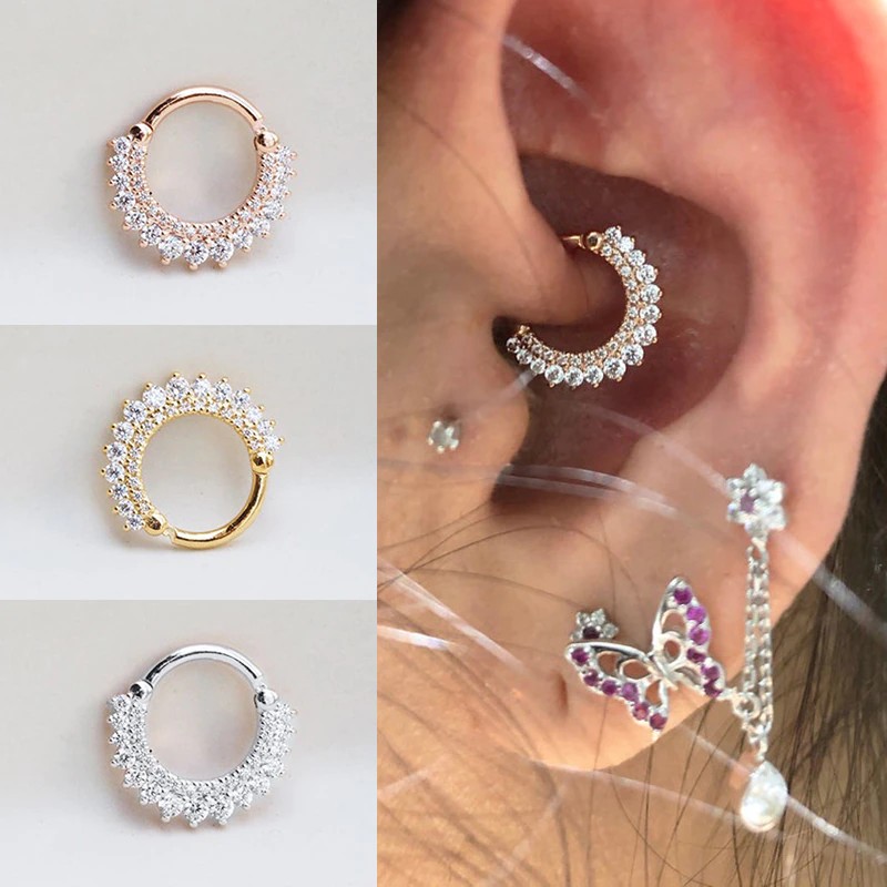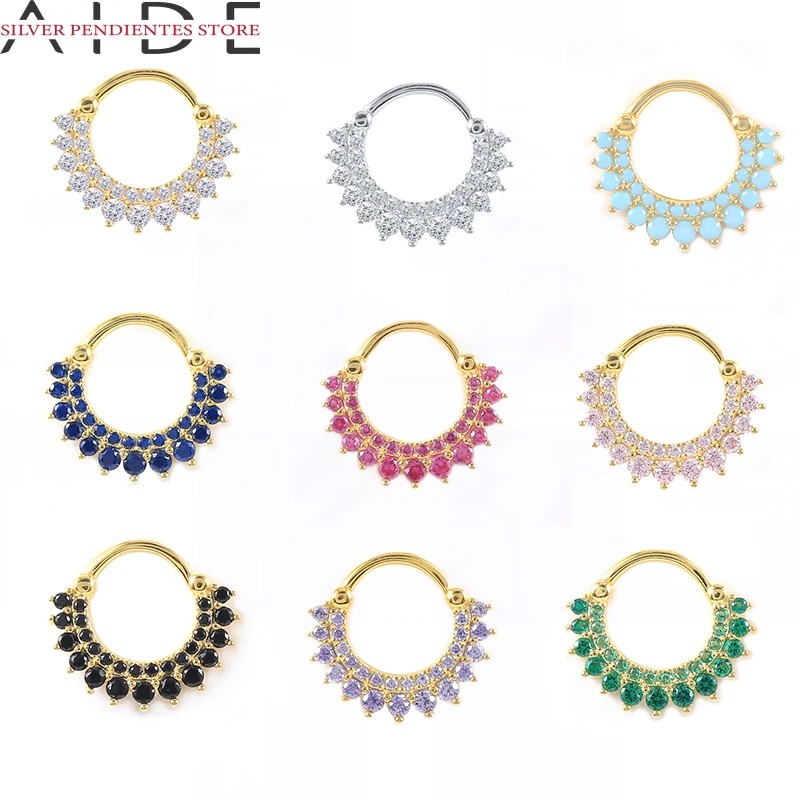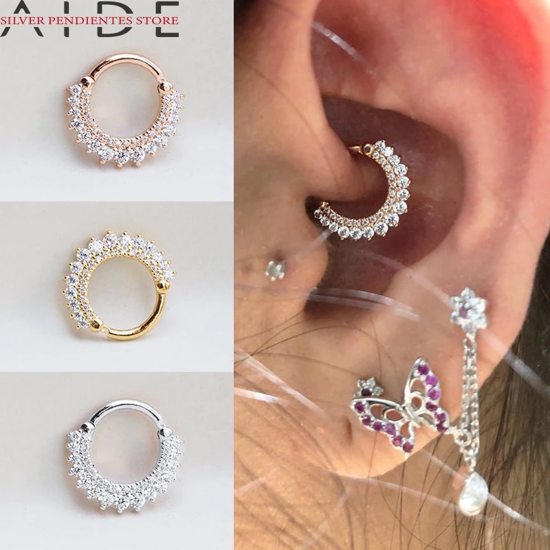 AIDE 1PC 925 Sterling Silver Nose Rings Women 2020 Jewelry Zircon Round Nose Ring Piercing Cartilage Earrings Body Jewelry