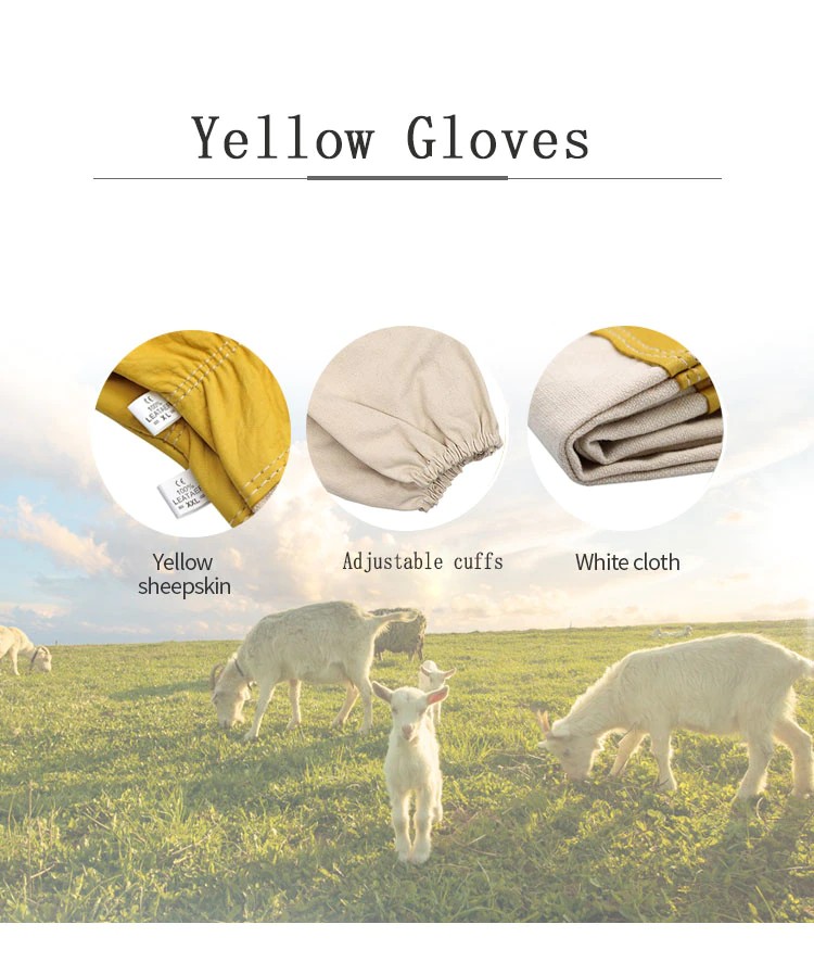 قفازات تربية النحل واقية الأكمام تنفس شبكة صفراء جلد الغنم الأبيض والقماش لقفازات تربية النحل تربية النحل