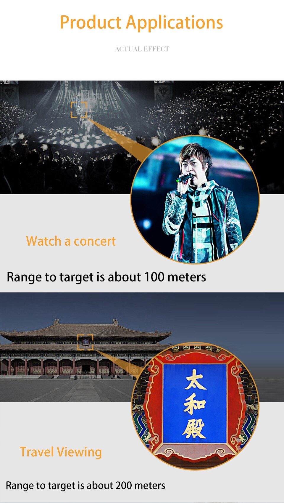 السفر ، والرياضة في الهواء الطلق ، ومشاهدة واستخدام. يحتوي هذا النموذج على طول بؤري وثيق يصل إلى 0.5 م ، وهو ليس فقط مثير للإعجاب ، ولكن أيضا لديه مزايا لعرض المعارض في نطاق قريب. إنها صغيرة وخفيفة ، ويمكن حملها في أي وقت.