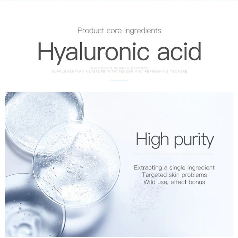 ✔حمض الهيالورونيك الجزيئات: لن يتم امتصاصه من قبل الجلد ، والبقاء على سطح الجلد ، وتشكيل حماية