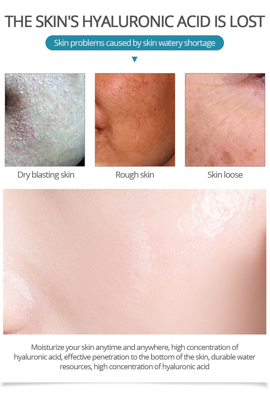 ترطيب بشرتك في أي وقت وفي أي مكان ، وتركيز عال من حمض الهيالورونيك ، واختراق فعال إلى الجزء السفلي من الجلد ، والموارد المائية دائم ، وتركيز عال من حمض الهيالورونيك