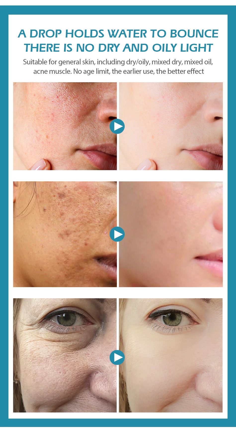 [فعالية المنتج]: كل قطرة من المصل ينعم ، يعيد شباب أقاربك ويعزز حواجز بشرتك ، يحتوي المنتج على أكثر عامل ترطيب فعال ويساعد على تجديد رطوبة البشرة ويساعد على رطوبة البشرة الجافة والخشنة ، لتجديد البشرة ورطوبتها وتغذيتها ورفع البشرة مع جعله ثابتًا