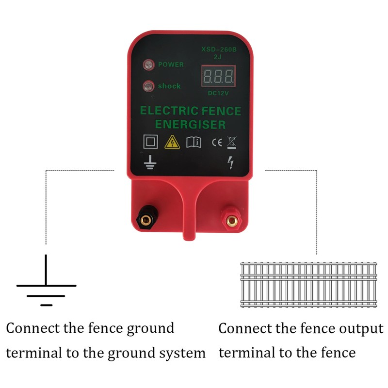 2. [محطتان] هذا السياج إنرجايزر يأتي القياسية مع اثنين من المحطات ، واحدة منها هو محطة الأرض سياج للاتصال إلى نظام التأريض المستقل ، والآخر هو محطة إخراج السياج للاتصال بسياج.
