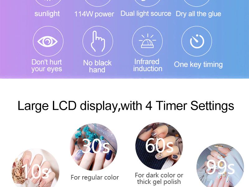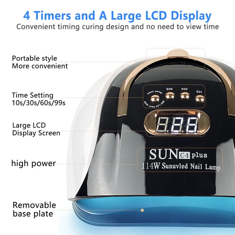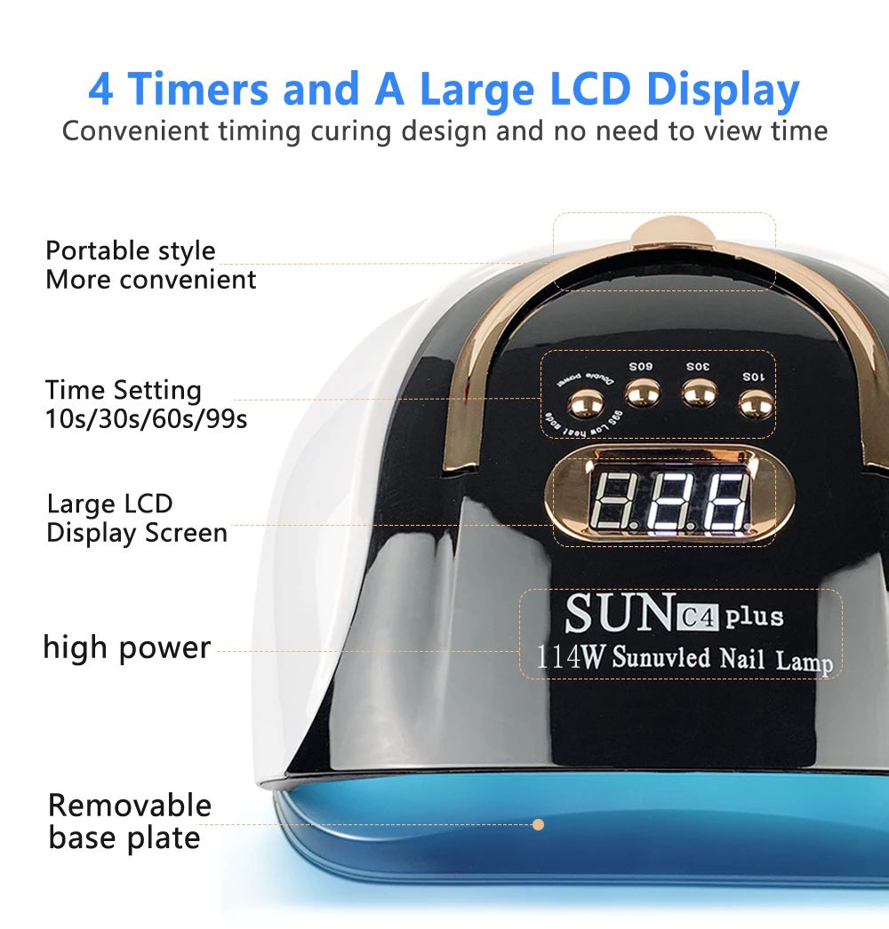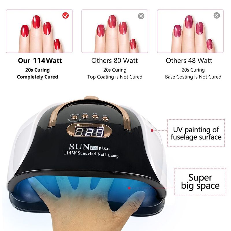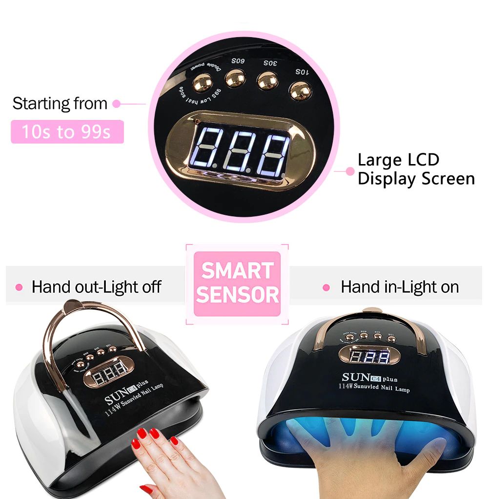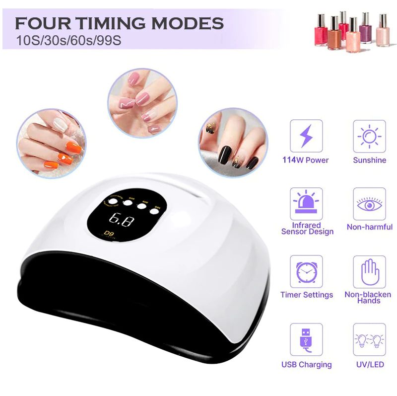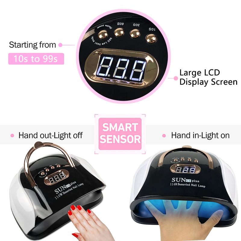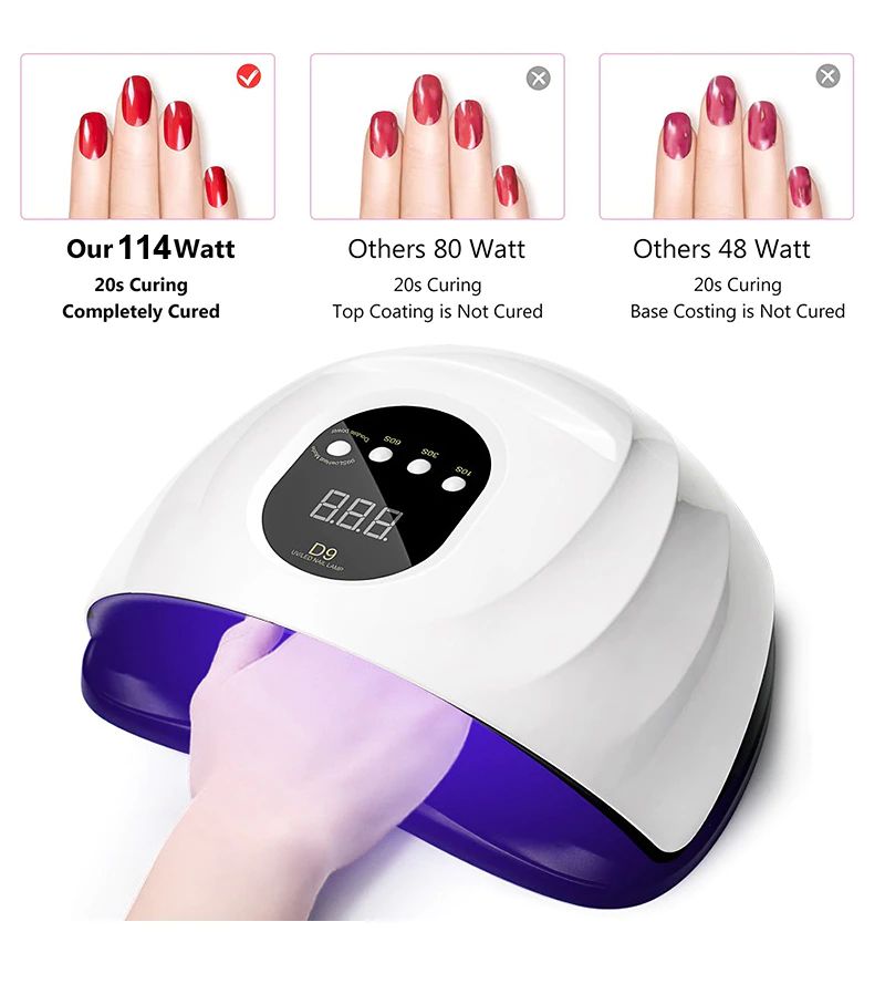 114 واط مصباح طلاء الأظافر بأشعة فوقة البنفسجية مسمار مجفف علاج مانيكير هلام ضوء مع 4 توقيت مستشعر تلقائي آلة محمولة للأظافر وأظافر