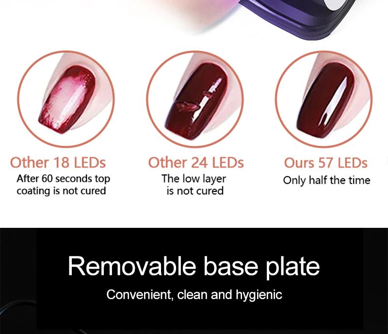 مصباح طلاء الأظافر بأشعة فوقة البنفسجية 114 واط مسمار مجفف ل هلام طلاء الأظافر علاج سريع مع 57 LED الخرز هلام ضوء للأظافر مع شاشة الكريستال السائل الذكية الاستشعار