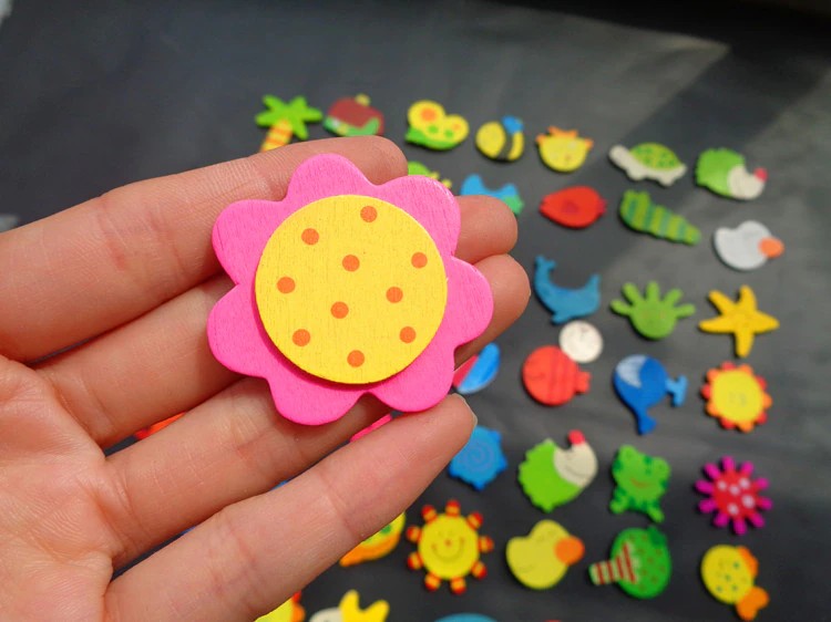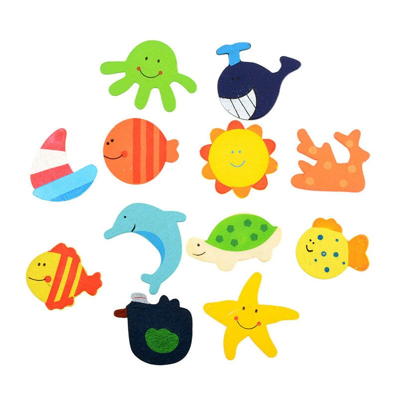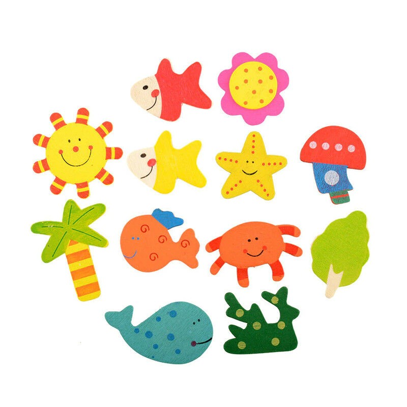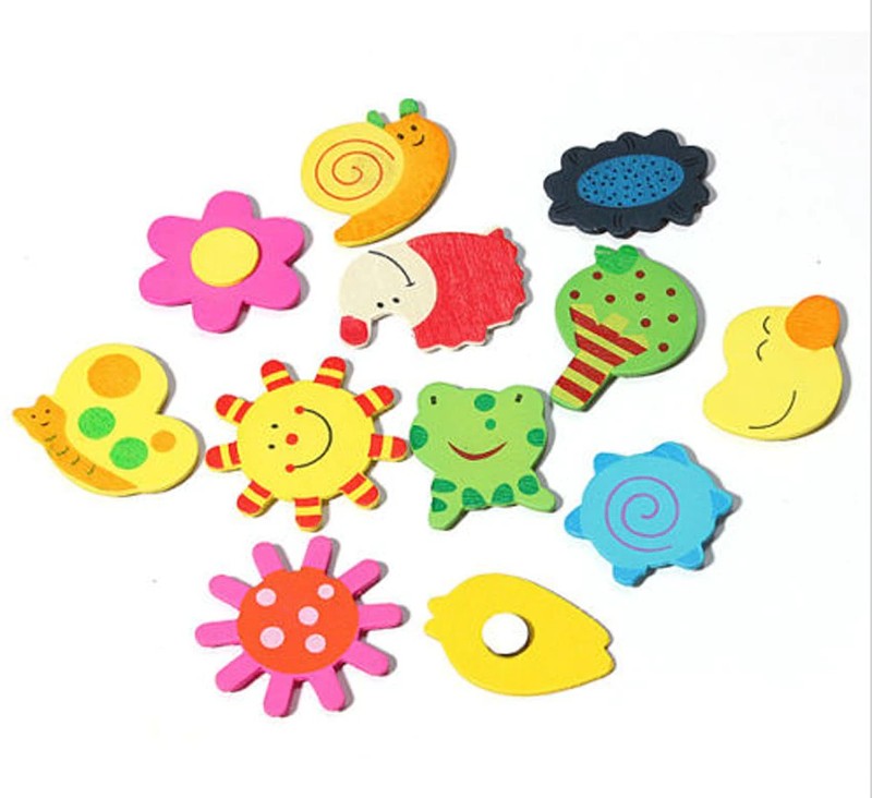 طفل طفل التعليمية ، 12 قطعة مضحك وملونة الكرتون خشبية ملصقا مغناطيس الثلاجة.