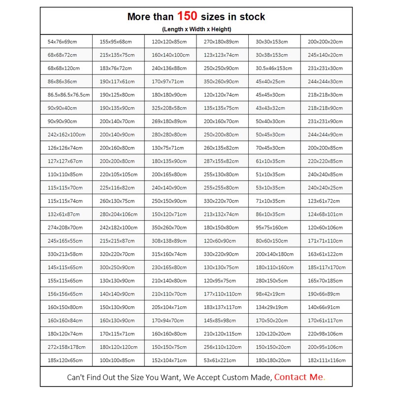 ملاحظة:بسبب القياس اليدوي وطريقة القياس المختلفة ، هناك انحراف حجم 1-3 سنتيمتر