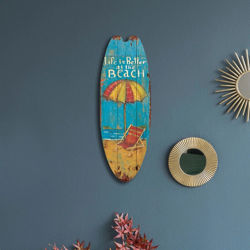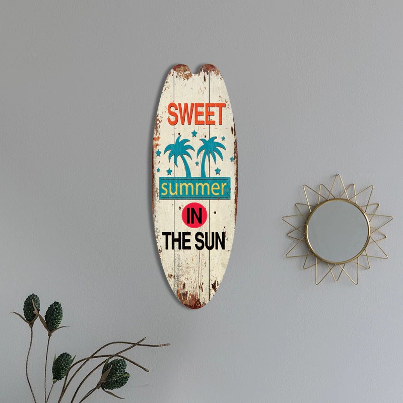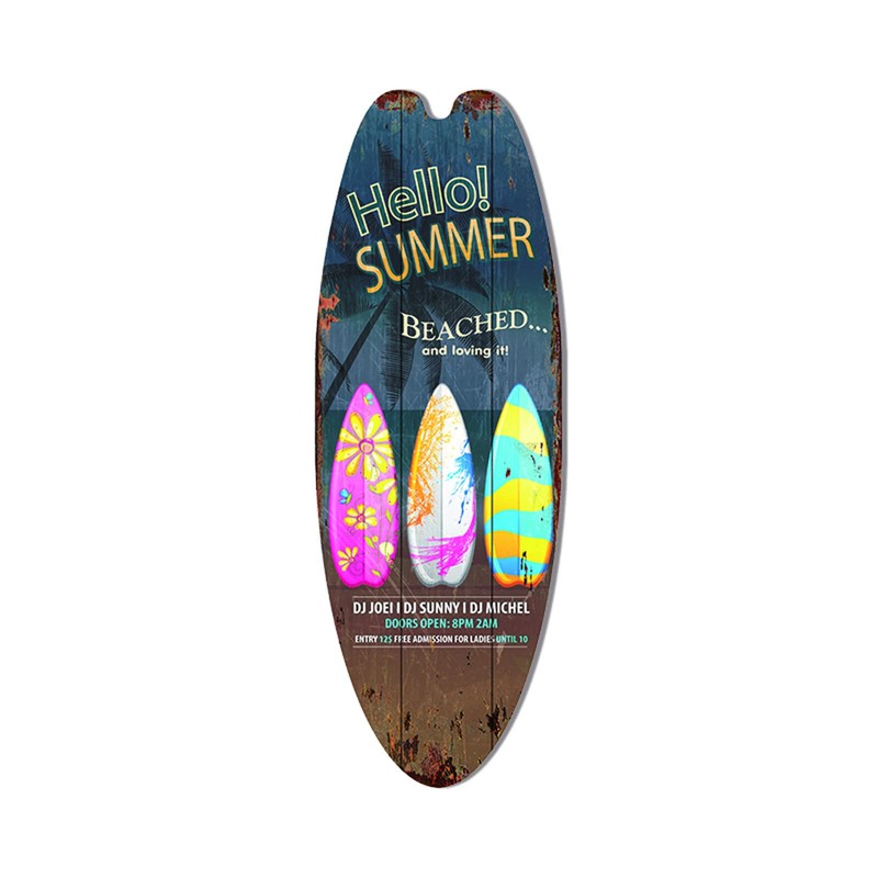 يتم وضع علامات خشبية ركوب الأمواج الرجعية في المنازل والحانات ، أحواض سباحة ، مخازن الشاطئ وغيرها من الأماكن لتزيين ، لزيادة مزاج عطلة الخاص بك.