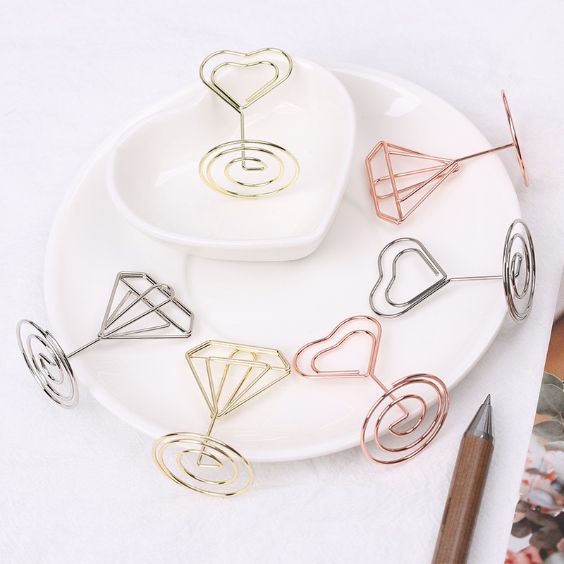 1 قطعة معدنية رومانسية مكان حامل بطاقة القلب الماس صور كليب الجدول رقم حامل مقعد ماركر كول حفل زفاف سطح المكتب ديكور