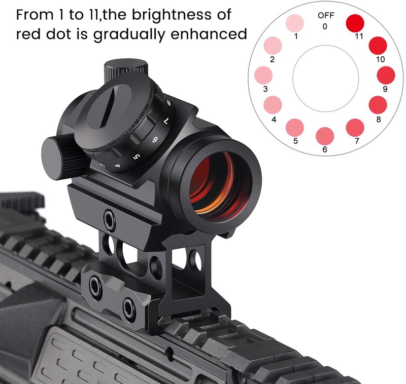 【مستويات متعددة الكثافة من السطوع 】 11 إعدادات سطوع نقطة حمراء توفر الرؤية المثلى في أي ظروف الضوء ، والسماح الرماة تلبية كثافة نقطة للحالة في متناول اليد.