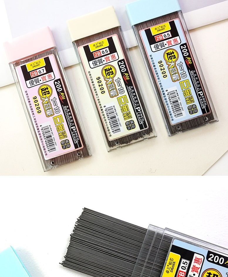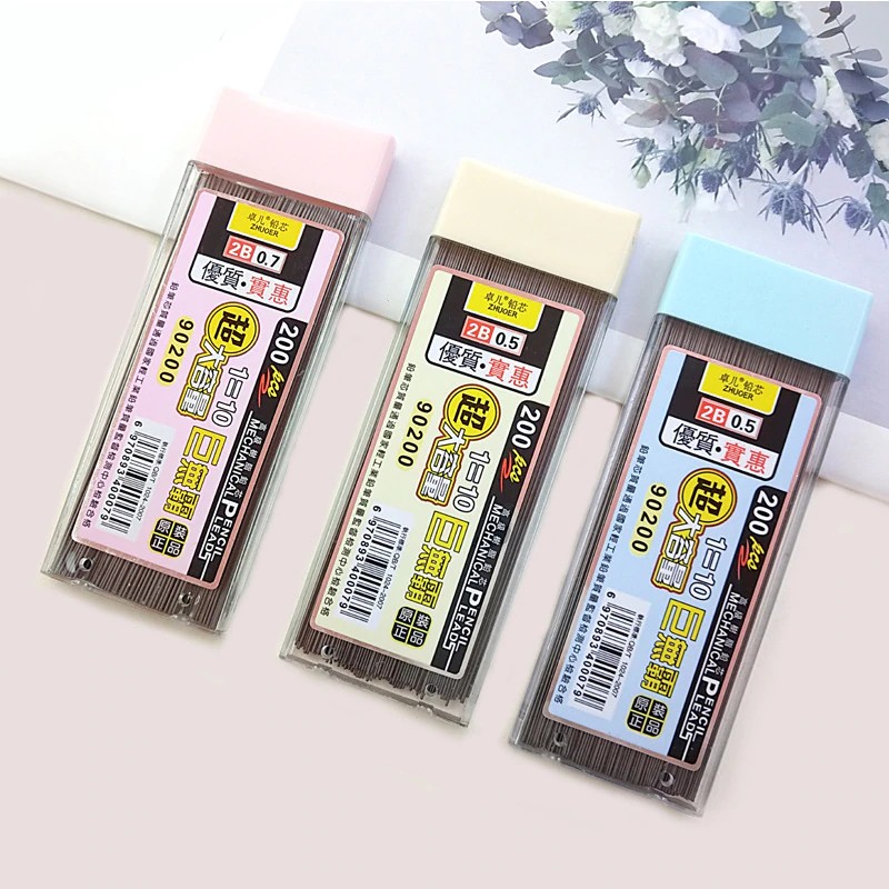 200/Pcs 0.5/0.7 مللي متر الميكانيكية قلم رصاص يؤدي 2B قلم رصاص قضيب التلقائي قلم رصاص الأساسية الملء مكتب المدرسة الفن رسم الرسم لوازم
