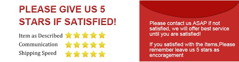 ردود الفعل: 1. يرجى ترك تعليقات 5 نجوم إذا كنت راضيًا عن منتجاتنا وخدمتنا ، وسنقدم لك (عنصر كما هو موضح 5 نجوم ، اتصال 5 نجوم ، وقت الشحن 5 نجوم). 2. إذا كانت المنتجات التي استلمتها تالفة أو أنماط خطأ ، يرجى عدم ترك أي ردود فعل سلبية أولاً ، يرجى الاتصال بنا ، وسنتعامل معها ونعمل على أفضل الحلول ، ترضيك هو حركتنا لعمل أفضل. سياسة الشحن والإرجاع: 1. سنتابع الطلبات بشكل عام خلال 24 ساعة بمجرد استلام الدفع. 2. حزمة صغيرة عادية من الصين بالإضافة إلى البريد الجوي المسجل في الصين ويستغرق 15-60 يومًا. 3. الشحنات الموصى بها: الشحن القياسي-أكثر استقرارًا وأكثر أمانًا وأسرع. 4. نقدم أيضًا الشحن السريع مثل DHL و UPS و EMS وما إلى ذلك ، يرجى عدم التردد في الاتصال بنا إذا كنت في حاجة ماسة إليها أو كانت الكمية كبيرة. 5. نحن نقبل الإرجاع والاسترداد في غضون 15 يومًا بعد اكتمال الطلب ، يرجى الاتصال بنا. دروبشيبينغ والبيع بالجملة: 1. نقوم بإسقاط الشحن في كل مكان في العالم ، لا تتردد في الاتصال بنا إذا كان لديك أي أسئلة أو كونسرنس 2. سوف نقدم أفضل سعر للبيع بالجملة ، ونوصي بأفضل شحنة