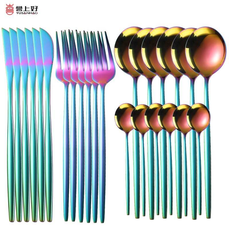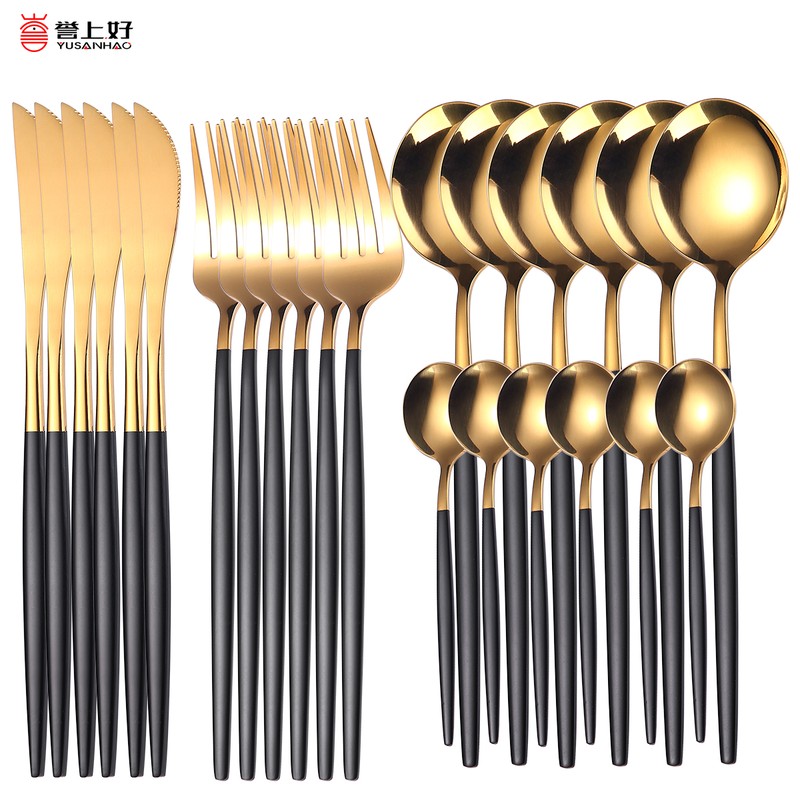أدوات المائدة مصنوعة من الفولاذ المقاوم للصدأ عالي الجودة ، والتي هي دائمة ودائمة.