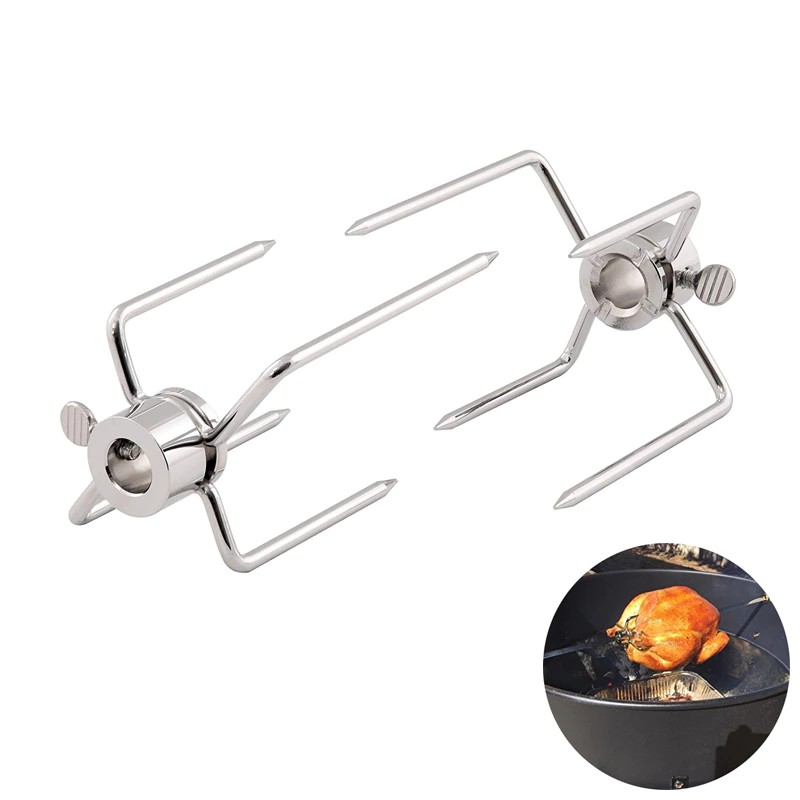 Lmetjma 2 قطعة/المجموعة المشواة شواء الشوك الفولاذ المقاوم للصدأ يبصقون شواء الشوك الفحم الدجاج المشواة اللحوم شوكة شواء أداة Kc0149