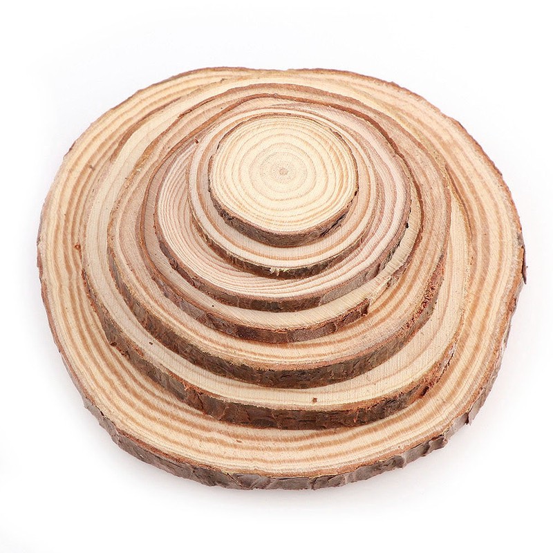 3-12 سنتيمتر سميكة 1 حزمة الصنوبر الطبيعي الجولة لم تنته شرائح الخشب الدوائر مع شجرة النباح سجل أقراص Crafts بها بنفسك الحرف حفل زفاف اللوحة