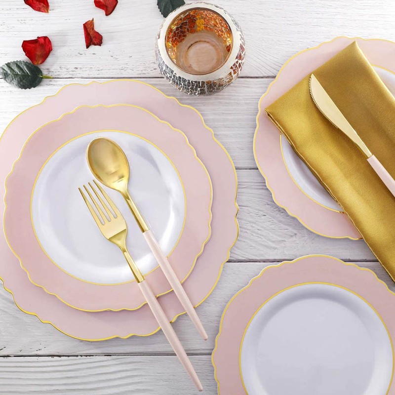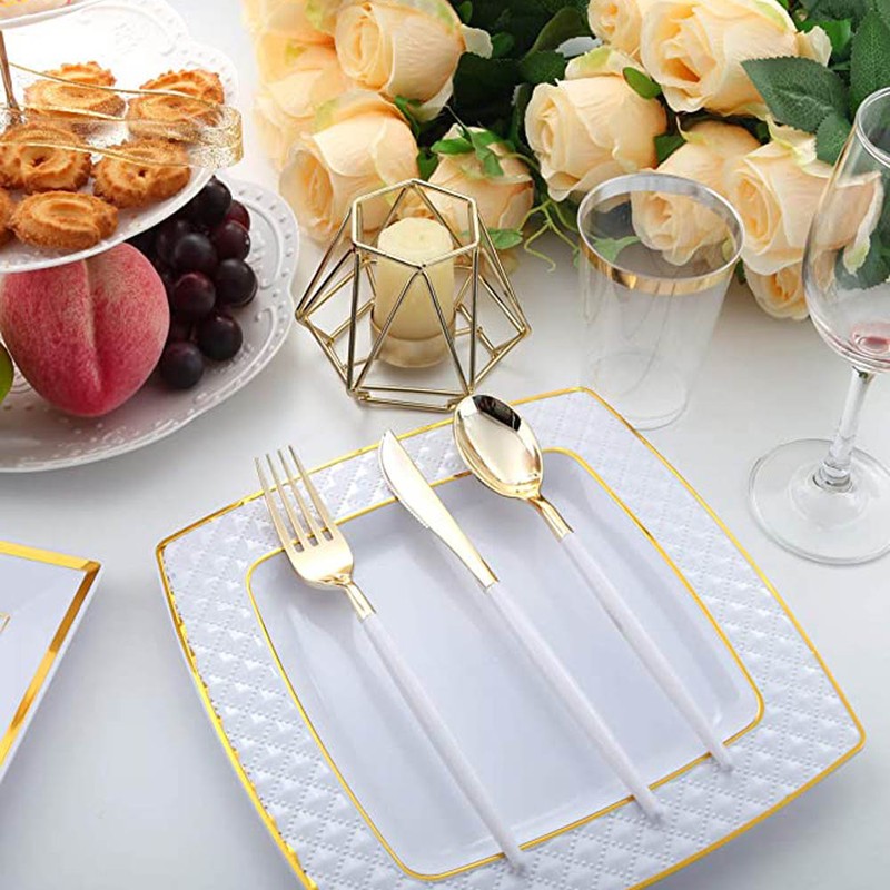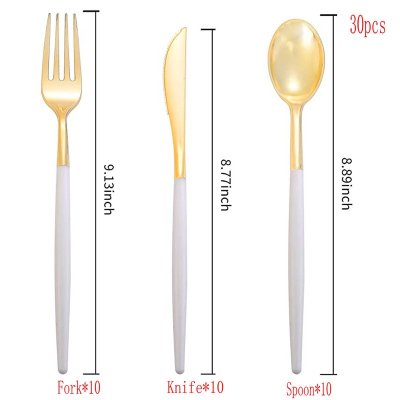 • 30 قطع من لوازم الطاولة/المائدة قابل للتصرف الذهبي البلاستيك الفضيات مجموعة أدوات المائدة حفل زفاف عيد ميلاد أدوات المائدة لوازم